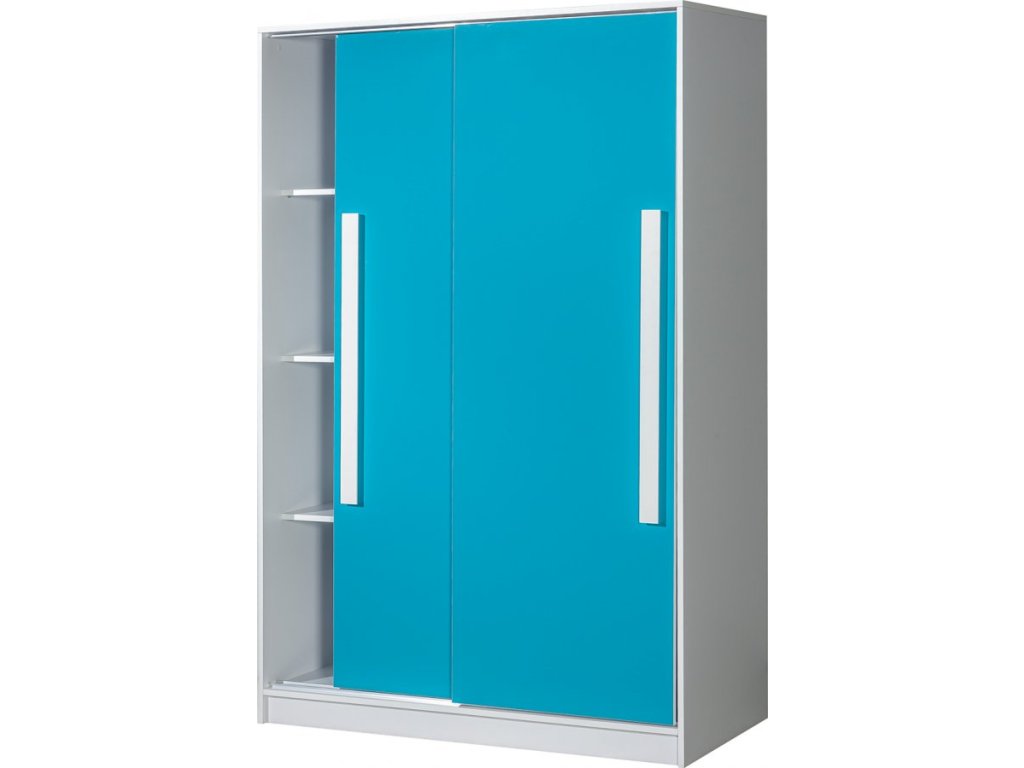 GOLIÁŠ 12- skříň posuvné dveře (GULIVER 12)-korpus bílá/dvířka tyrkysová lesk/úchyt bílá (DO) (K150-E)