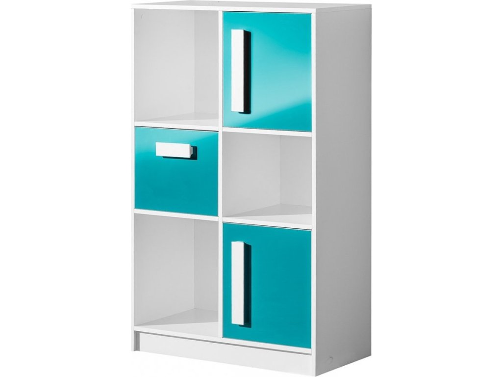 GOLIÁŠ 7- komoda vysoká se 3 dvířkami a 3 police (GULIVER 7)-korpus bílá/dvířka tyrkysová lesk/úchyt bílá (DO) (K150-E)