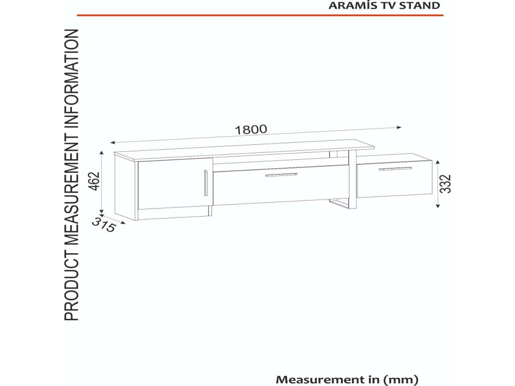 - Rozměry: 180 x 48 x 33 cm, poskytuje dostatek prostoru pro televizi a další zařízení.