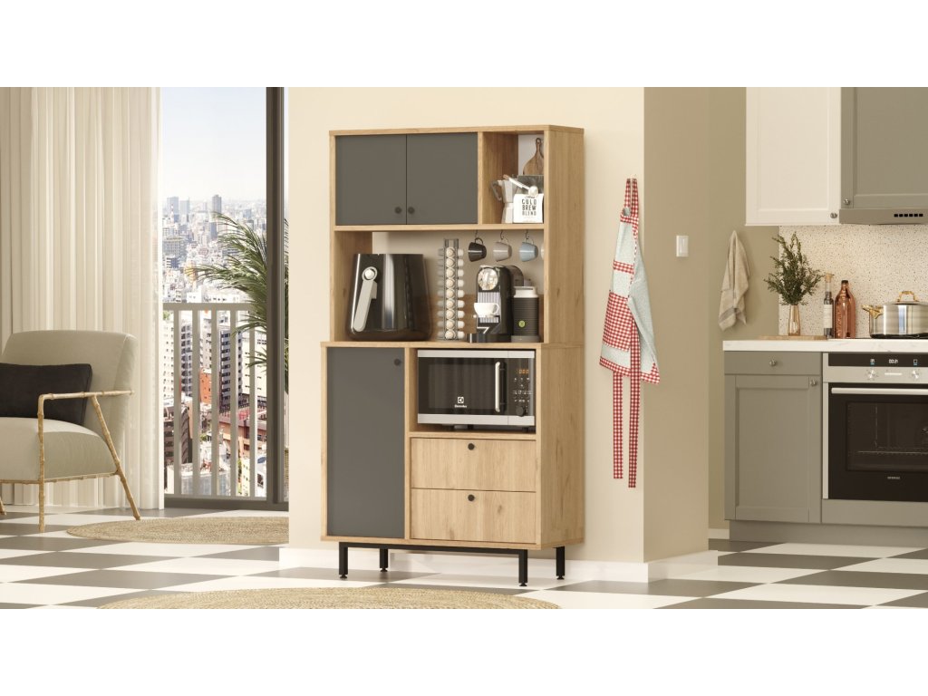 HERMOSA vysoká skříňka na mikrovlnku, sepet/antracit