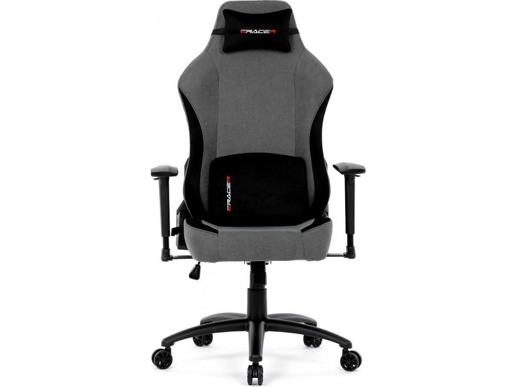Herní křeslo, šedá látka, houpací mechanismus, polohování opěradla 90°-180°, 3D područky, polštáře z paměťové pěny, nosn KA-F12 GREY2