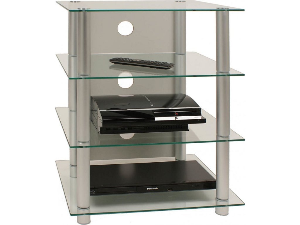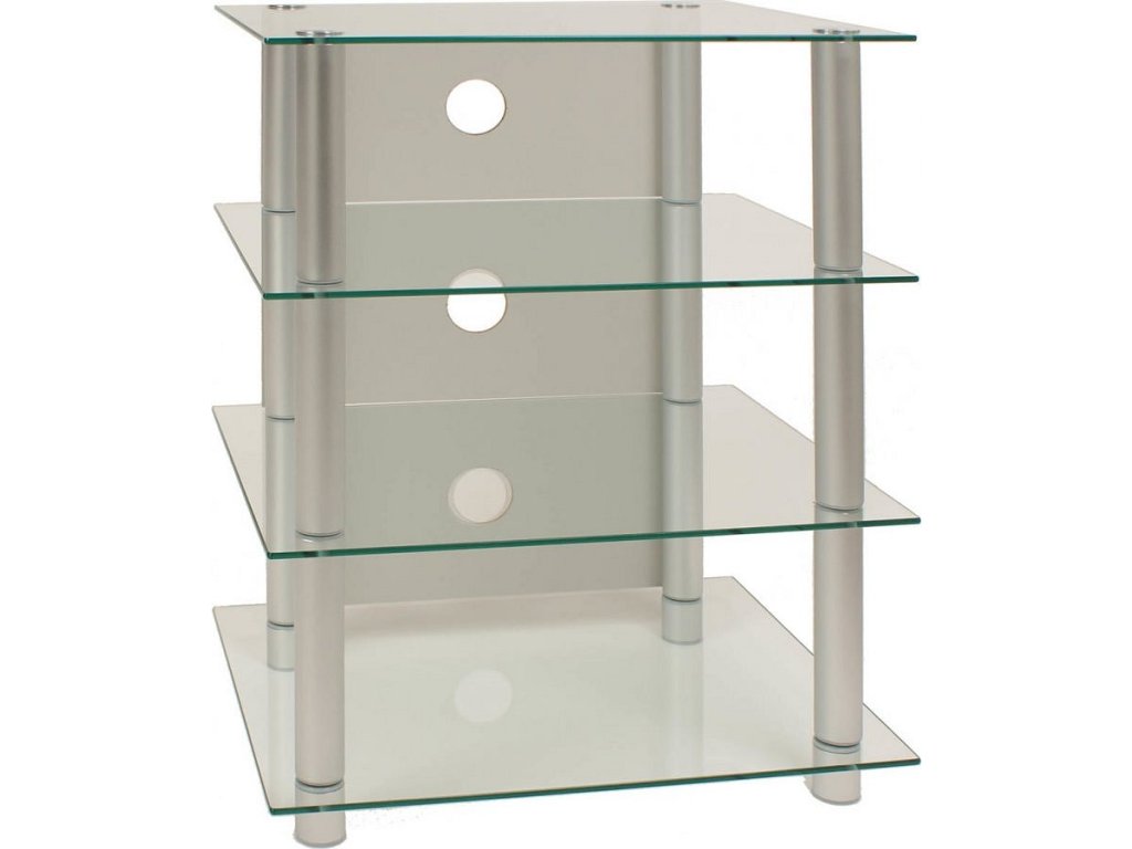 Elegantní stolek se čtyřmi stabilními policemi z 5mm tvrzeného bezpečnostního skla a vysoce kvalitních hliníkových sloupků. Je ideální pro rozsáhlé domácí audio a video systémy.
