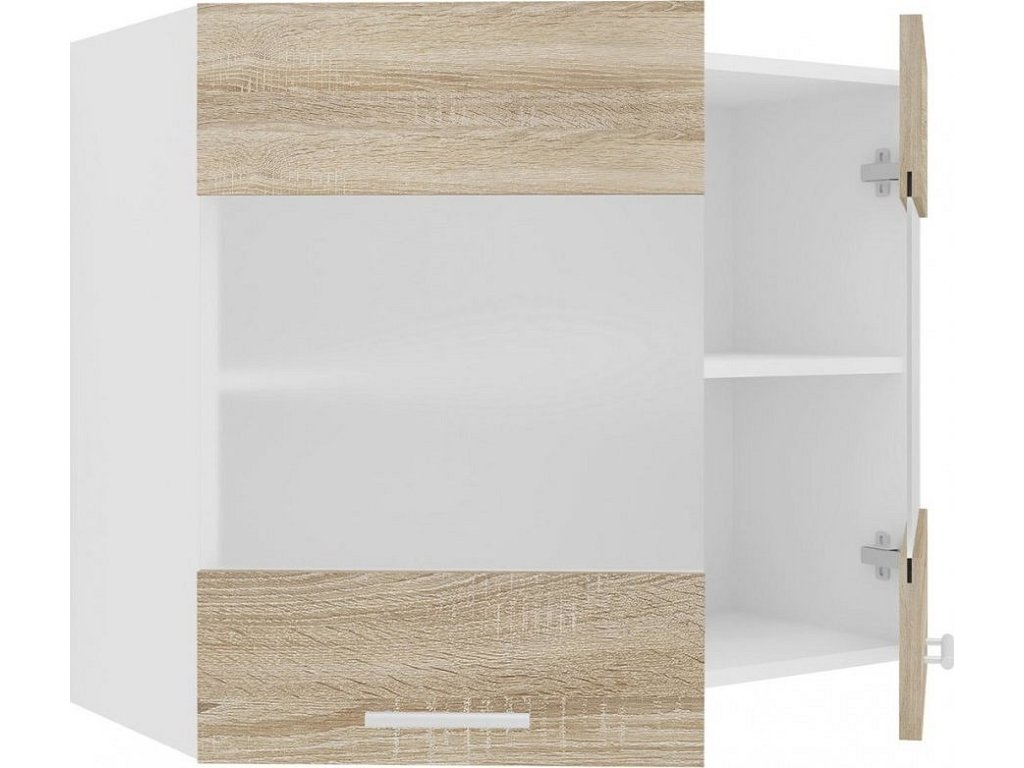 Prostornou horní kuchyňskou skříňku VCM zdobí 2 dvířka v provedení sonoma dub s výřezem matného skla. Má jednu přídavnou polici a uvnitř nabízí spoustu úložného prostoru, který se v kuchyni vždy hodí.