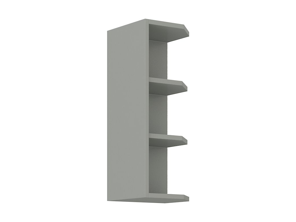 CASA 87001 Otevřený horní roh KARMEN GREY na pravou stranu linky vyrobený z kvalitního lamina. Korpus je v barvě šedá. Rozměry regálu - šířka 30 cm, výška 71,5 cm, hloubka 30 cm. Tento roh vytvoří elegantní zakončení vaší kuchyňské linky. V naší nabídce naleznete další výběr skříněk k sestavení celé kuchyně.