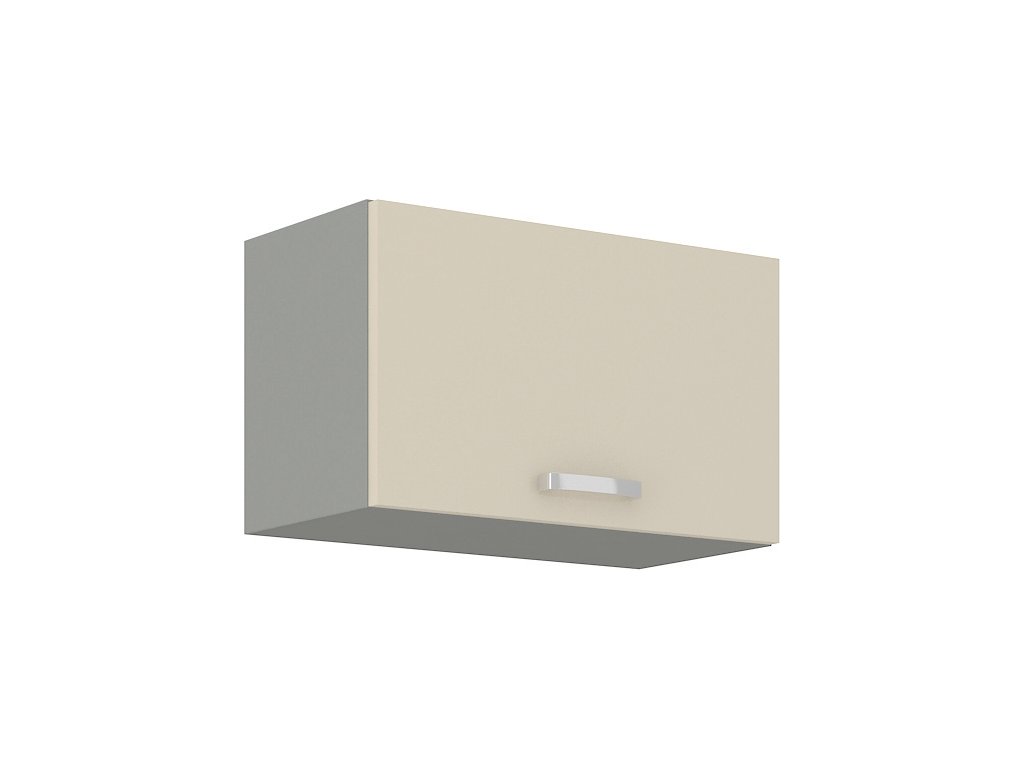 CASA 87001 Horní skříňka nad digestoř KARMEN vyrobená z kvalitního lamina a MDF. Korpus je v barvě šedá a dvířka v barvě karmen krémová v lesku. Rozměry skříňky - šířka 60 cm, výška 36 cm, hloubka 31 cm. Úchyty jsou z kovu. Dvířka jsou pomocí plynových pístů otvíraná nahoru. V naší nabídce naleznete další výběr skříněk k sestavení celé kuchyně.