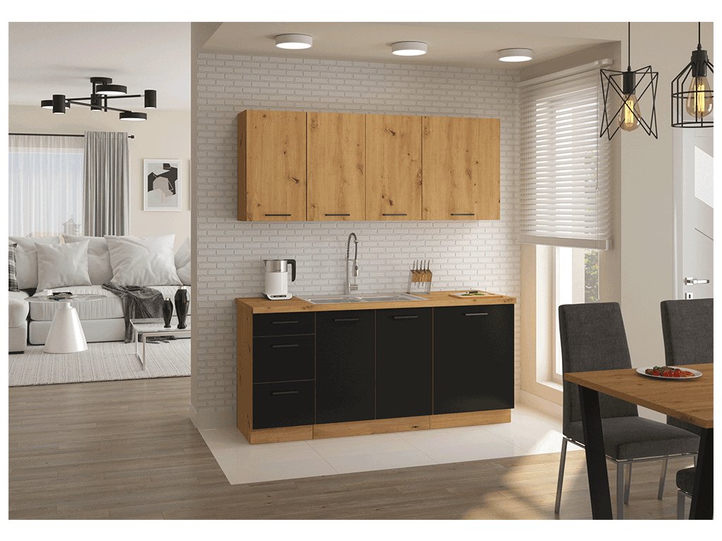 Horní kuchyňská skříňka MONRO 30 G-72 1F, černý mat/dub artisan