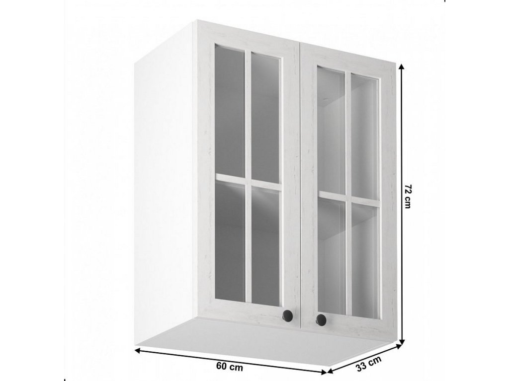 Horní kuchyňská skříňka PROVANCE G60, 2-dveřová, bílá/sosna andersen/sklo