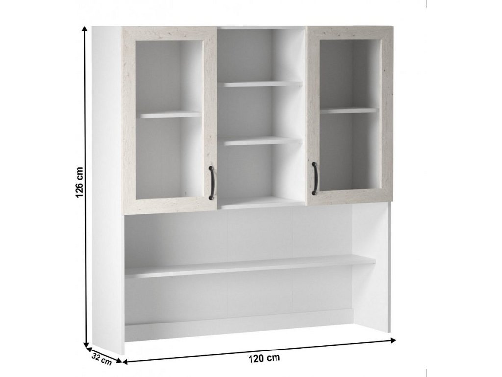 Horní kuchyňská skříňka ROYAL K120 nástavná, bílá/sosna skandinávská/sklo