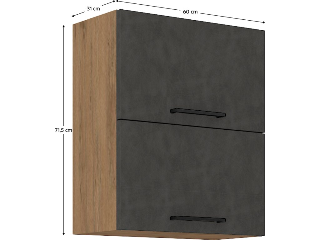 Horní kuchyňská skříňka VEGA 60 GU-72 2F výklopná, dub lancelot/šedá mat