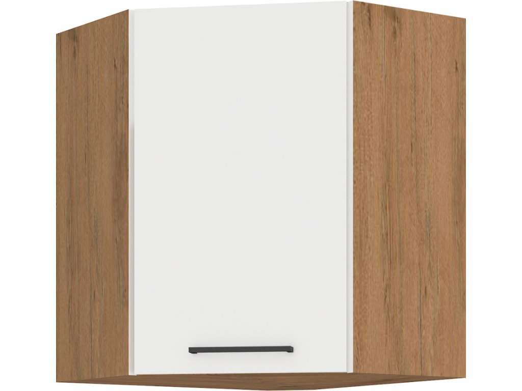 Horní rohová skříňka, bílá extra vysoký lesk HG/dub lancelot, VEGA 58x58 GN-72 1F