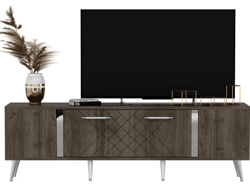 HUSLIA TV stolek na nožičkách, ořech / stříbrná