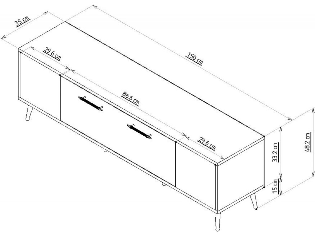Vyroben z kvalitního LTD materiálu o tloušťce 18 mm, TV stolek zajišťuje vysokou pevnost a dlouhou životnost. Je vybaven praktickou skříňkou s jedněmi dvířky, která poskytuje dostatek úložného prostoru pro vaše multimediální zařízení a další potřeby. Stylové plastové úchytky vynikají svou jednoduchostí a snadnou manipulací.