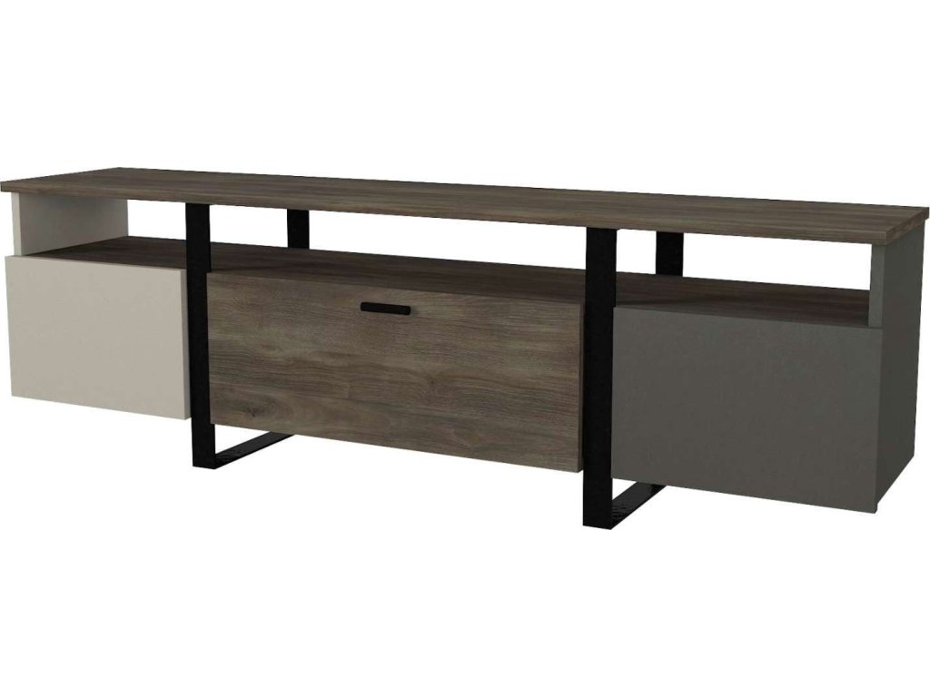 Objevte stylový TV stolek, který efektivně kombinuje funkčnost s moderním designem. Jeho barvy šedá, hnědá a antracit reflektují současné trendy v interiérovém designu a zároveň dodávají obývacímu pokoji pohodlný, ale sofistikovaný vzhled.