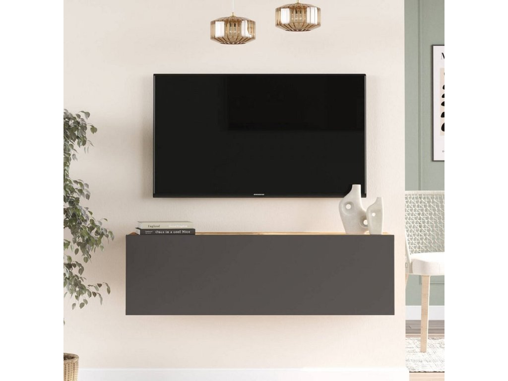 Televizní stolek, kde se setkává borovice s antracitovým nádechem