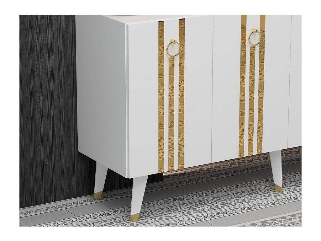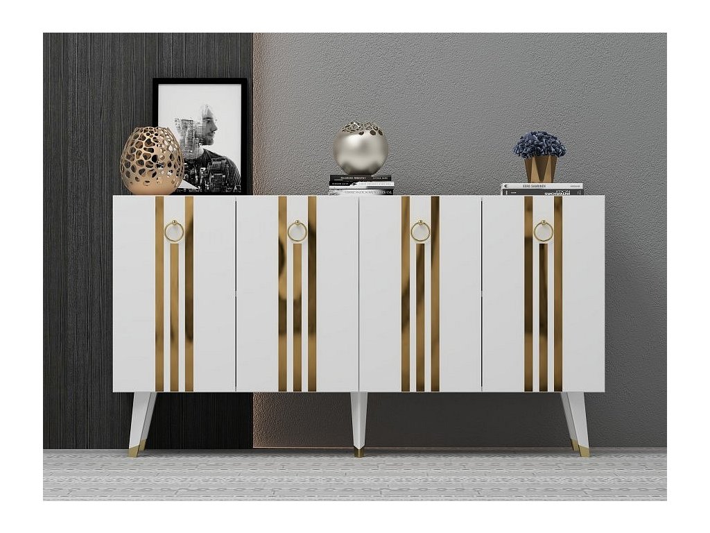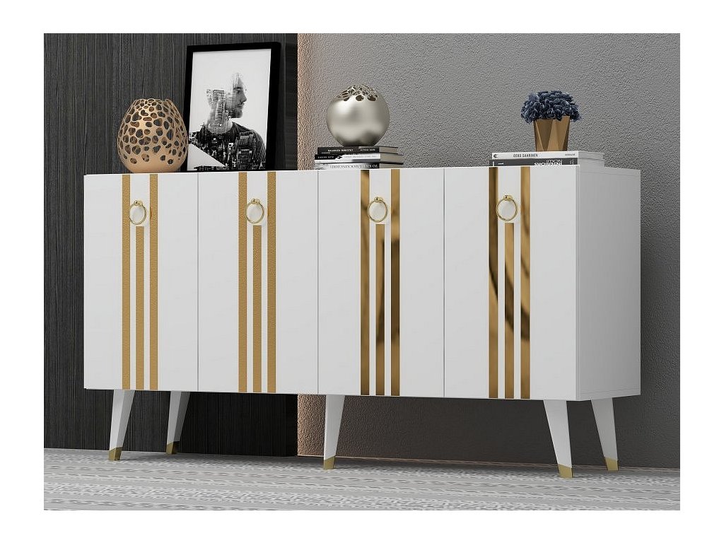 Vkročte do světa luxusu s naší komodou, vyrobenou s maximální péčí a pozorností k detailu. Kombinace bílé a zlaté barvy vytváří fascinující efekt, který okamžitě pozvedne atmosféru každé místnosti. Ať už ji umístíte do obývacího pokoje, chodby nebo ložnice, tato komoda se stane ústředním bodem vašeho prostoru a zaujme každého, kdo se na ni podívá.