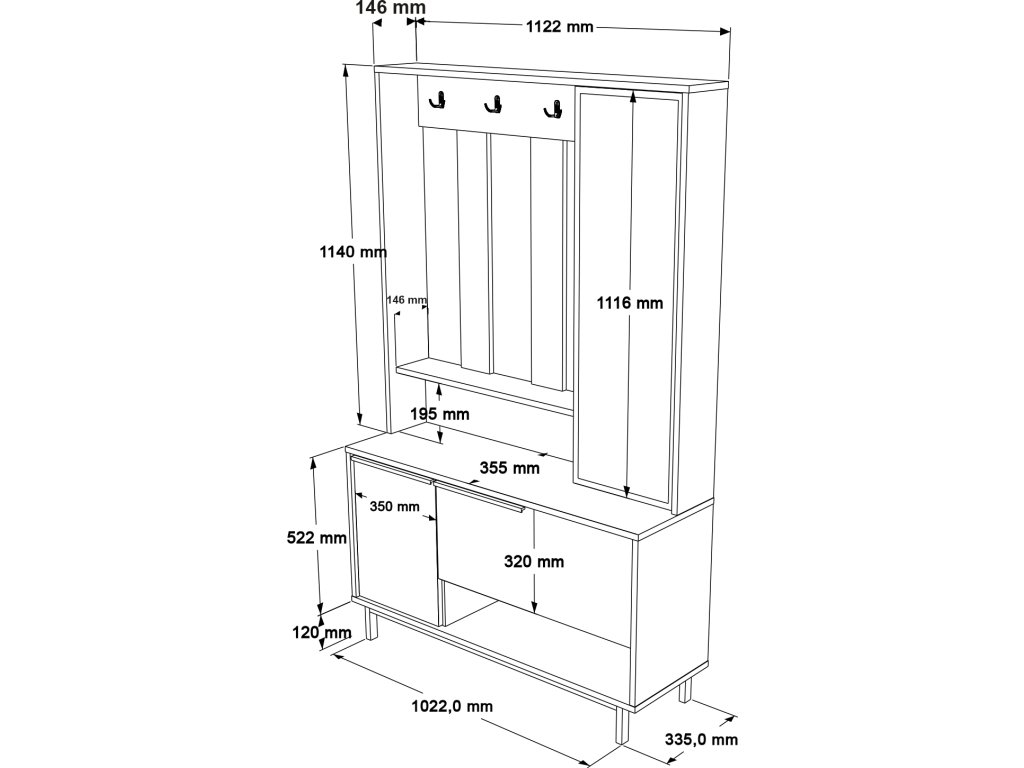 Předsíňová sestava je ideálním řešením pro organizaci a estetické vybavení vaší předsíně. Vyrobena z kvalitního LTD materiálu a kovu, tato sestava kombinuje odolnost a styl. Sestava zahrnuje věšákovou stěnu se zrcadlem a botník, což poskytuje dostatek úložného prostoru a zajišťuje praktické uspořádání věcí.