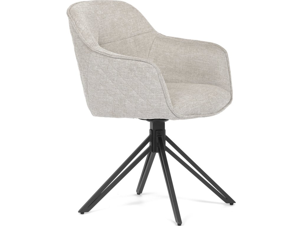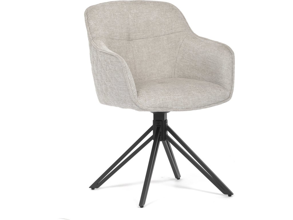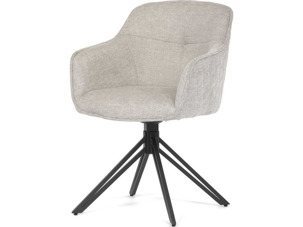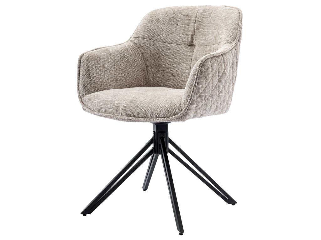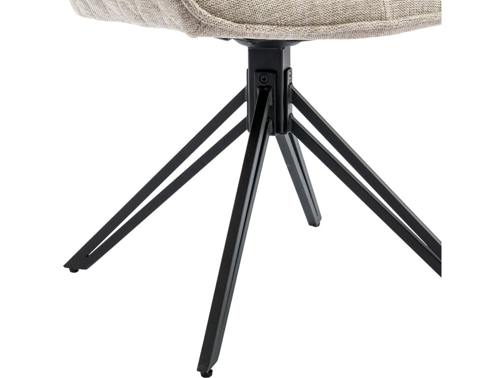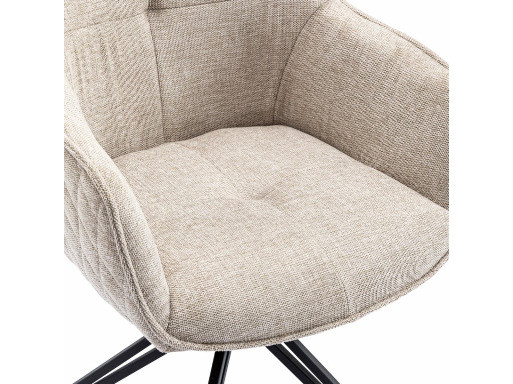 Jídelní a konferenční židle skořepinové konstrukce v zajímavém designu a ve velmi žádaném industriálním / loft stylu. Židle disponuje otočnou funkcí L90°/P90° s automaticky vratným mechanismem. Konstrukce sedáku i opěradla má pevnou kovovou kostru, potah je z jemně hrubé látky v béžovém odstínu. Polstrování je z pevné PU pěny, na sedáku v hustotě 28 kg/m3 a na opěradle 24 kg/m3. K pohodlí posedu poslouží nejen bohaté polstrování, ale i praktické a pohodlné opěrky rukou. Příjemný dekorativní prvky tvoří centrální čalounický vtah na opěradle a z vnější strany kosočtvercové prošívání. Nedílnou součástí je široká látková paspule v barvě židle, lemující celý obvod. Stabilitu zajišťuje designovaná čtyřnohá podnož s centrálním uchycením skořepiny. Konstrukce jednotlivých paprsků nohou je čtvercového průřezu, odlehčena středovým průzorem. Povrchová úprava je kvalitním práškovým nástřikem v černé matné barvě. Podnož židle je rektifikovatelná, na každém paprsku nohy je výškově nastavitelný kluzák s plastovým krytem. Ten zamezí možnosti poškození tvrdých podlah. Tento model je dobrou volbou pro Váš výběr do jídelních nebo obývacích prostor, hodí se i jako konferenční židle, kde ale musíte oželit možnosti jejího otáčení. Nosnost je do 120 kg, Základní rozměry – celková šíře 57 cm, celková hloubka 58 cm, celková výška 84 cm a výška sedu 50 cm. Montáž není složitá, zvládne ji i méně zručný nový majitel této židle.