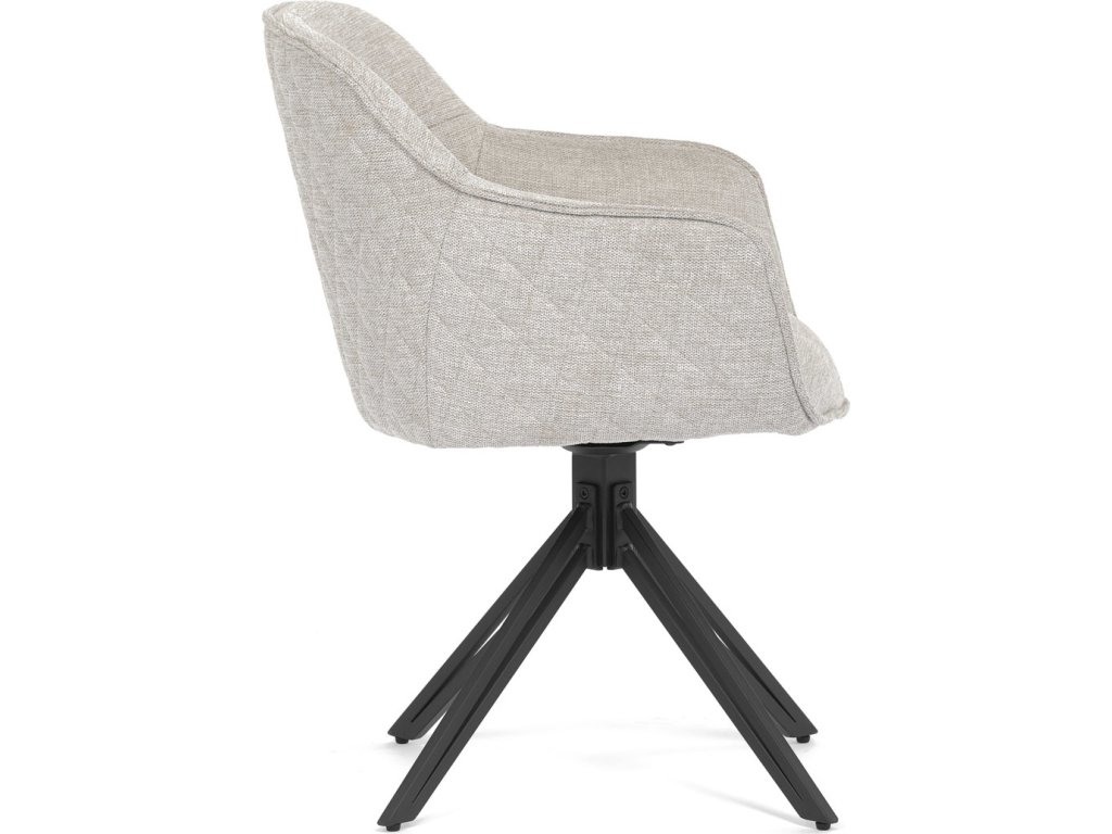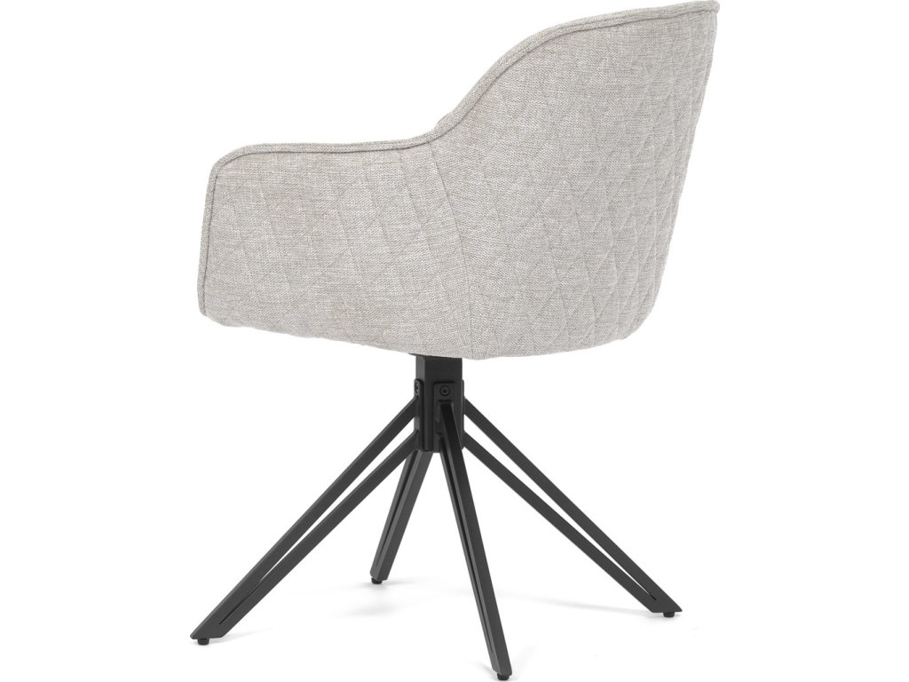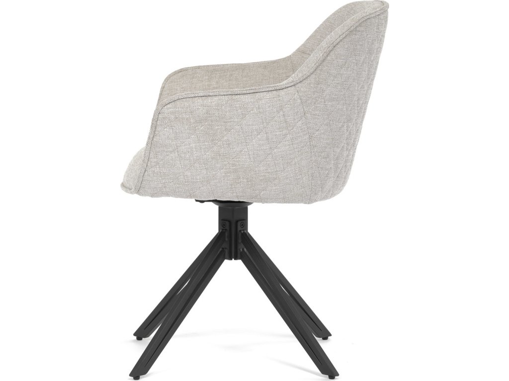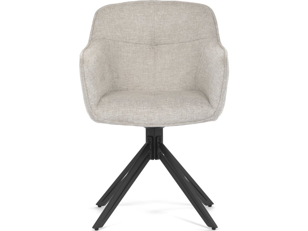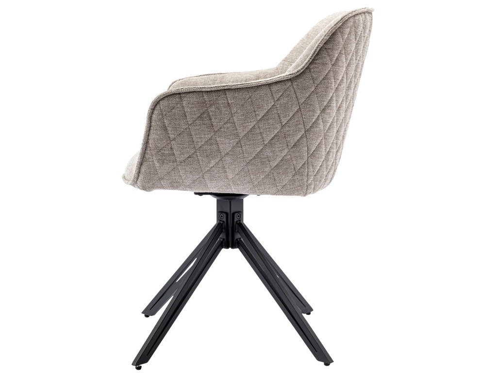 Jídelní a konferenční židle skořepinové konstrukce v zajímavém designu a ve velmi žádaném industriálním / loft stylu. Židle disponuje otočnou funkcí L90°/P90° s automaticky vratným mechanismem. Konstrukce sedáku i opěradla má pevnou kovovou kostru, potah je z jemně hrubé látky v béžovém odstínu. Polstrování je z pevné PU pěny, na sedáku v hustotě 28 kg/m3 a na opěradle 24 kg/m3. K pohodlí posedu poslouží nejen bohaté polstrování, ale i praktické a pohodlné opěrky rukou. Příjemný dekorativní prvky tvoří centrální čalounický vtah na opěradle a z vnější strany kosočtvercové prošívání. Nedílnou součástí je široká látková paspule v barvě židle, lemující celý obvod. Stabilitu zajišťuje designovaná čtyřnohá podnož s centrálním uchycením skořepiny. Konstrukce jednotlivých paprsků nohou je čtvercového průřezu, odlehčena středovým průzorem. Povrchová úprava je kvalitním práškovým nástřikem v černé matné barvě. Podnož židle je rektifikovatelná, na každém paprsku nohy je výškově nastavitelný kluzák s plastovým krytem. Ten zamezí možnosti poškození tvrdých podlah. Tento model je dobrou volbou pro Váš výběr do jídelních nebo obývacích prostor, hodí se i jako konferenční židle, kde ale musíte oželit možnosti jejího otáčení. Nosnost je do 120 kg, Základní rozměry – celková šíře 57 cm, celková hloubka 58 cm, celková výška 84 cm a výška sedu 50 cm. Montáž není složitá, zvládne ji i méně zručný nový majitel této židle.