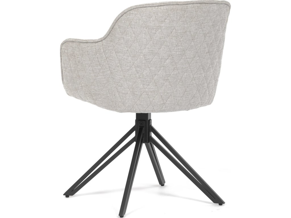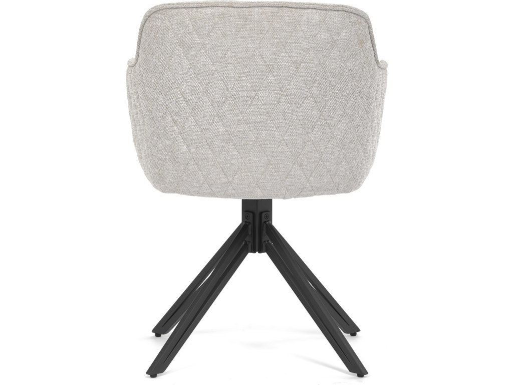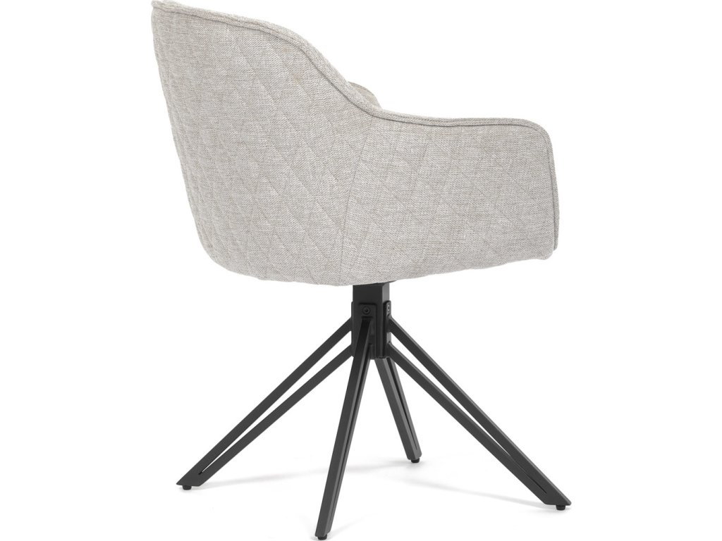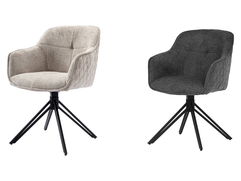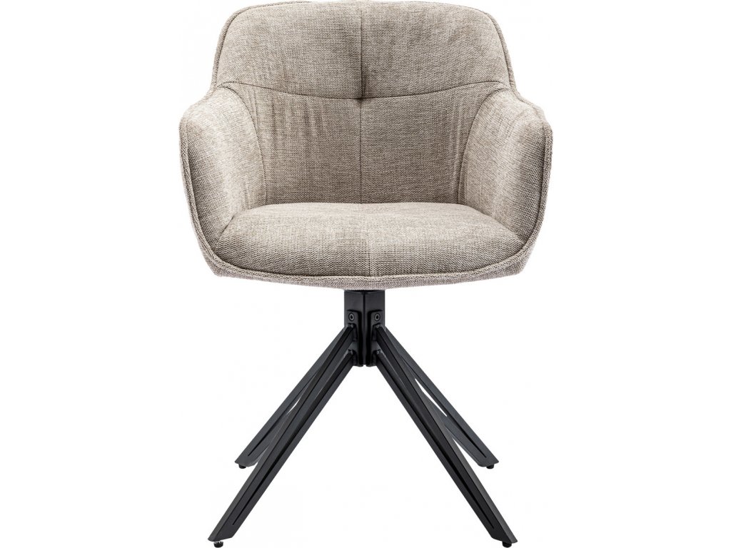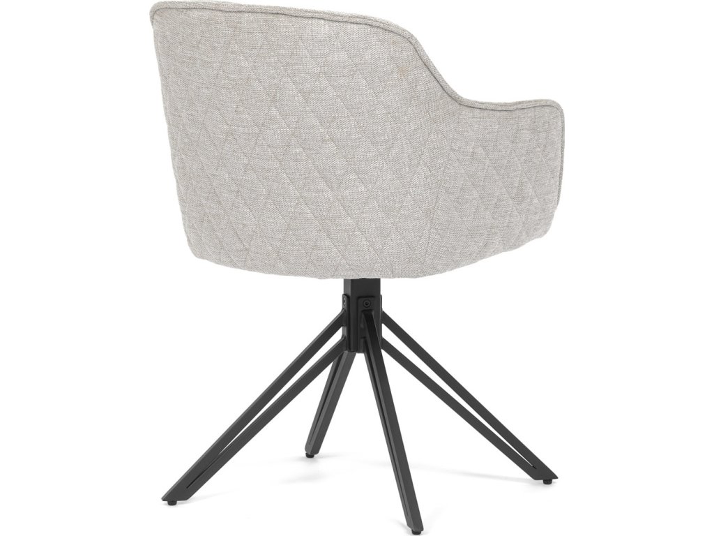 Jídelní a konferenční židle skořepinové konstrukce v zajímavém designu a ve velmi žádaném industriálním / loft stylu. Židle disponuje otočnou funkcí L90°/P90° s automaticky vratným mechanismem. Konstrukce sedáku i opěradla má pevnou kovovou kostru, potah je z jemně hrubé látky v béžovém odstínu. Polstrování je z pevné PU pěny, na sedáku v hustotě 28 kg/m3 a na opěradle 24 kg/m3. K pohodlí posedu poslouží nejen bohaté polstrování, ale i praktické a pohodlné opěrky rukou. Příjemný dekorativní prvky tvoří centrální čalounický vtah na opěradle a z vnější strany kosočtvercové prošívání. Nedílnou součástí je široká látková paspule v barvě židle, lemující celý obvod. Stabilitu zajišťuje designovaná čtyřnohá podnož s centrálním uchycením skořepiny. Konstrukce jednotlivých paprsků nohou je čtvercového průřezu, odlehčena středovým průzorem. Povrchová úprava je kvalitním práškovým nástřikem v černé matné barvě. Podnož židle je rektifikovatelná, na každém paprsku nohy je výškově nastavitelný kluzák s plastovým krytem. Ten zamezí možnosti poškození tvrdých podlah. Tento model je dobrou volbou pro Váš výběr do jídelních nebo obývacích prostor, hodí se i jako konferenční židle, kde ale musíte oželit možnosti jejího otáčení. Nosnost je do 120 kg, Základní rozměry – celková šíře 57 cm, celková hloubka 58 cm, celková výška 84 cm a výška sedu 50 cm. Montáž není složitá, zvládne ji i méně zručný nový majitel této židle.