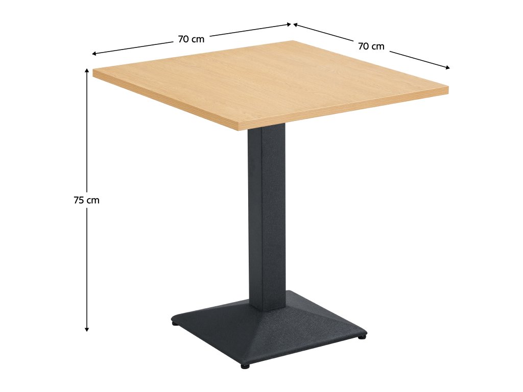 Materiál: DTD laminovaná/kov Barva: dub/černá Rozměry (ŠxHxV): 70x70x75 cm Tloušťka materiálu: 2,3 cm Nosnost: 50 kg Hmotnost: 13 kg Kovová podstava Moderní design Stůl typu: bistro Dodáváno v demontu