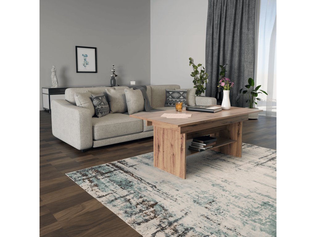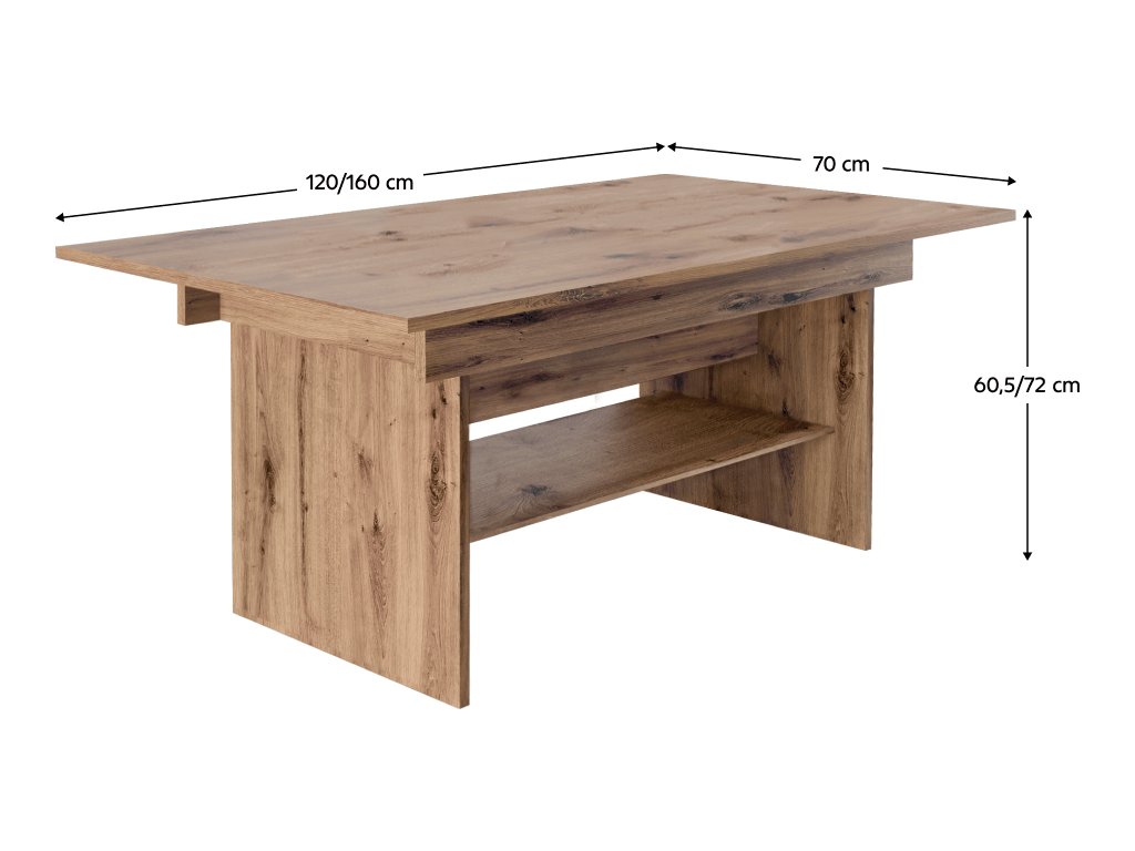 Jídelní/konferenční rozkládací stůl, dub artisan, 120/160x70 cm, LAVKO NEW