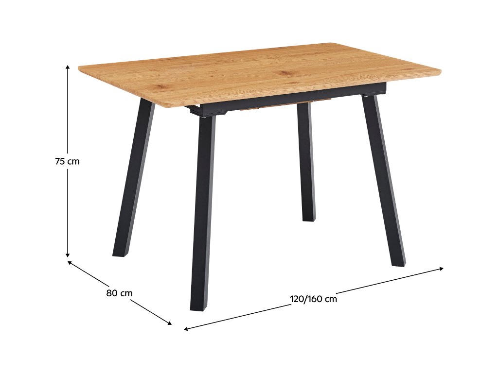 Jídelní rozkládací stůl, 120-160x80 cm, dub/černá, DIRAN
