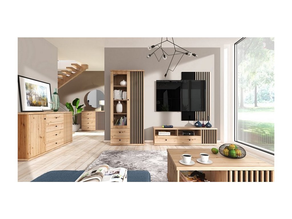 CASA 71023 Jídelní rozkládací stůl je vyroben z kvalitního lamina ohraničeného ABS páskou v barvě dub artisan. Šířka stolu po rozložení je 260 cm (dvě vkládací desky o délce 50 cm), tloušťka desky je 3,2 cm. Nohy stolu jsou kovové v černé barvě. Kolekce se skládá z mnoha prvků a tento široký výběr Vám zaručí sestavit si nábytek podle svých vlastních představ a přání. Dodáváme v demontovaném stavu.