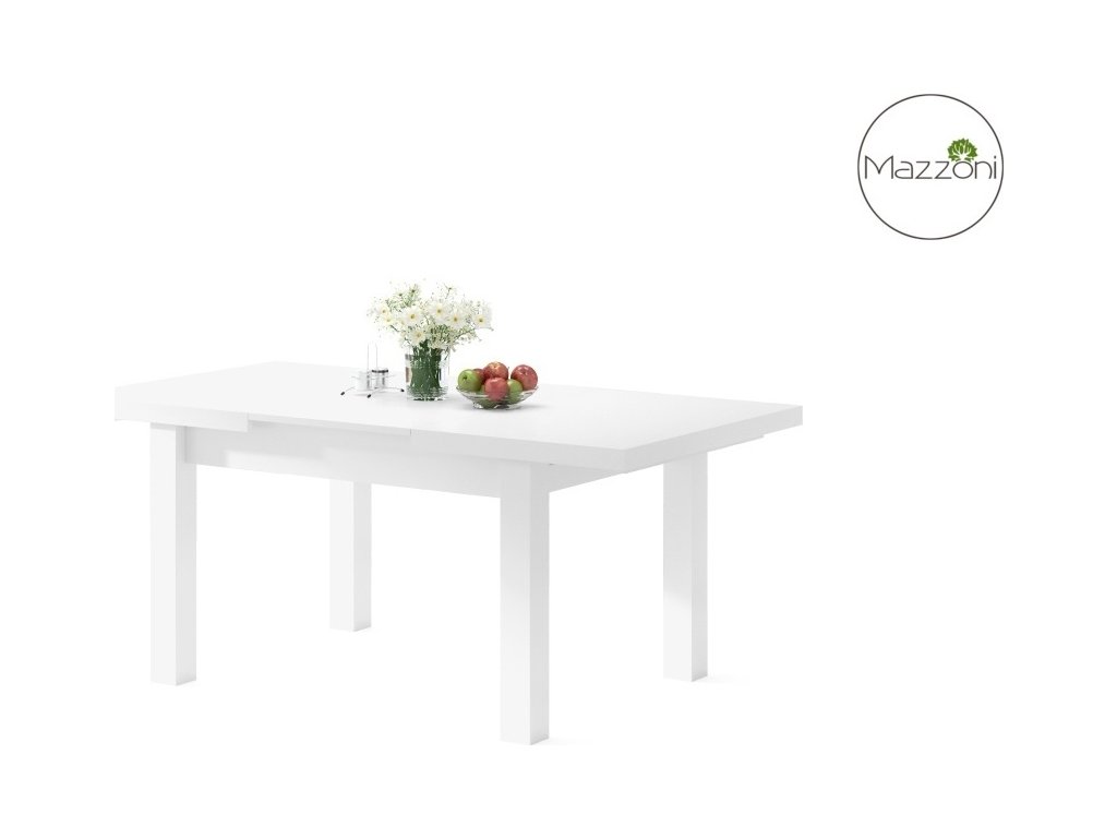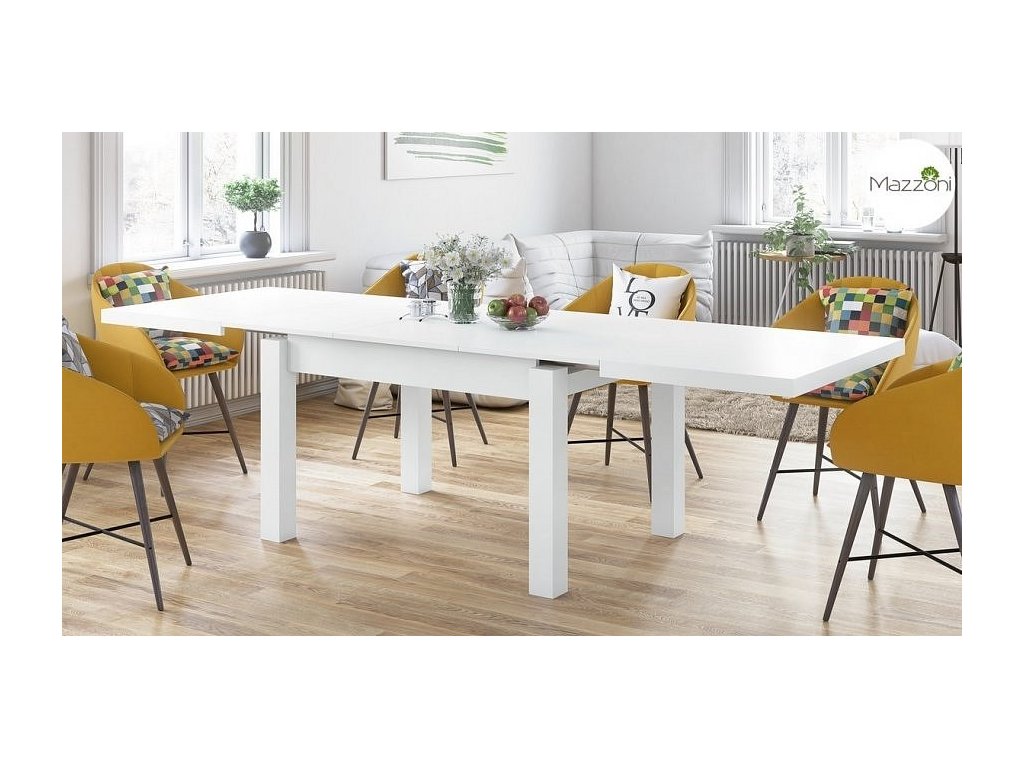 Elegantní a velmi praktický jídelní stůl pro 8-10 osob v moderním pojetí. Výhodou tohoto stolu je deska, která lze 3 x zvětšit. Základní rozměr u jídelního stolu je 90 x 120 x 78 cm, šířka desku stolu se dá zvětšit na 170, 220 nebo 270 cm. Barevné provedení je matná bílá. Dodáváme v demontovaném stavu