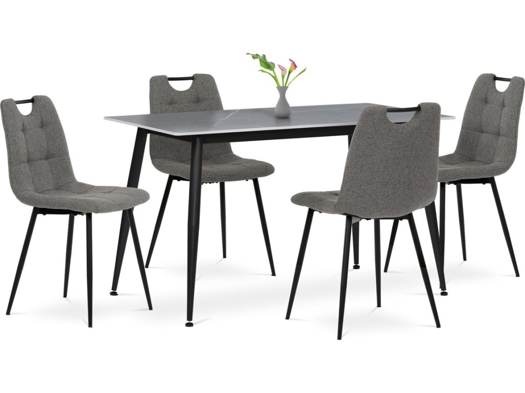 Jídelní set 1+4, rozměr stolu 130x70x76 cm, keramika, kov, stůl šedá+černá, židle šedá+černá ASE-1001 GREY2