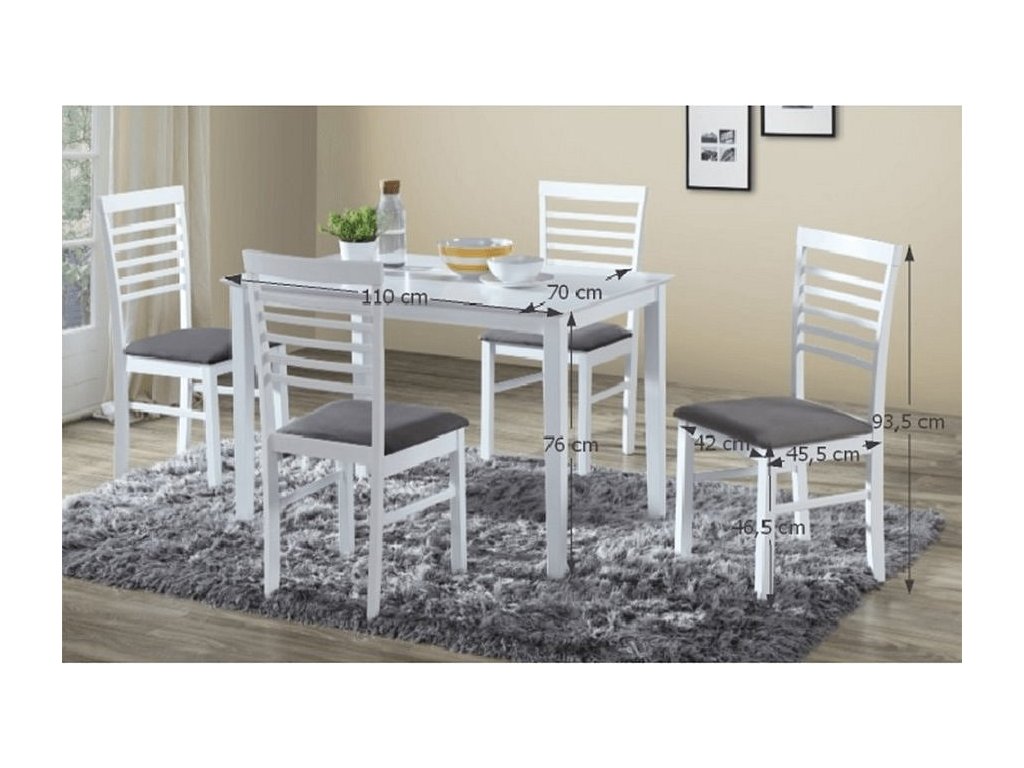 Rozměry (ŠxHxV): stůl: 110 x 70 x 76cm, stolička: 42 x45,5 x 93,5 cm, výška sedu: 46,5cm.