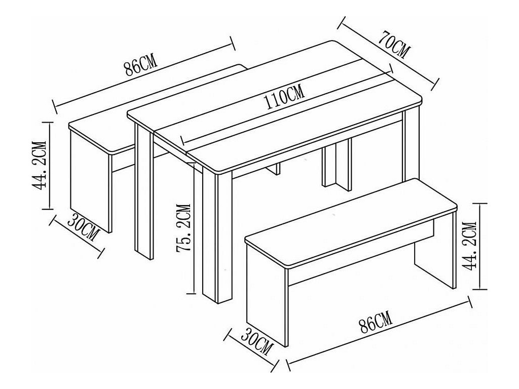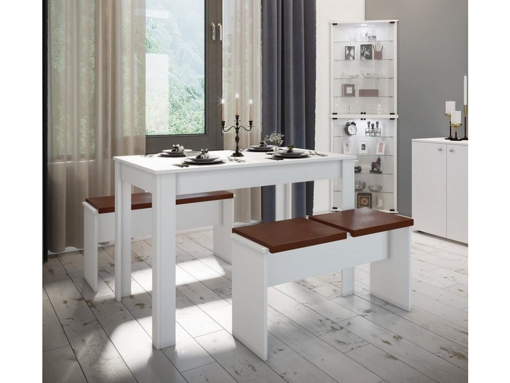 Elegantní jídelní set VCM Esal v dekoru se skládá z prostorného kuchyňského stolu a dvou lavic. Tento moderní set nabízí ideální kombinaci stylu, komfortu a funkčnosti – perfektní volba pro každou kuchyň nebo jídelnu.