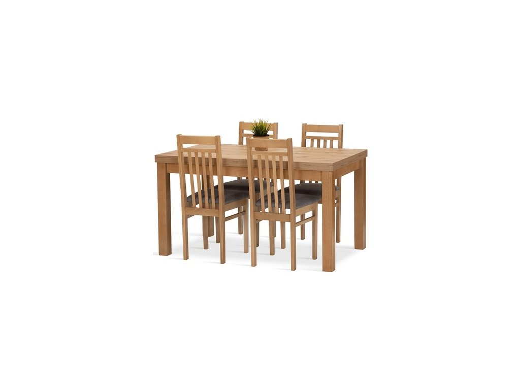 Jídelní sestava Meteor 4 se skládá z rozkládacího stolu a čtyř židlí. Tato jídelní sestava splní svůj účel na výbornou nejen v kuchyni, ale i v jídelně, nebo obývacím pokoji s jídelním koutem. Svou vysokou kvalitou a precizním zpracováním, uspokojí všechny budoucí, i ty velmi náročné, uživatele. Nohy stolu a kostry židlí jsou vyrobeny z bukového dřeva, mořeného tak, aby ladily s deskou stolu, která je vyrobená z lamina v dekoru dub artisan. Jídelní sestava je dodávaná v demontu. Součástí balení je schématický montážní návod, včetně všech potřebných spojovacích prvků. Cena je uvedena za jídelní stůl a 4 židle. Úvodní fotografie je ilustrační. Židle budou dodány v zelené barvě.