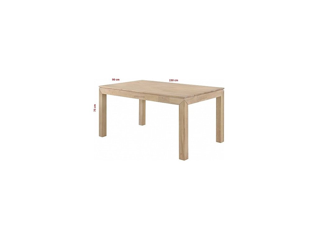 Masivní jídelní stůl MORIS má klasickou délku 150 centimetrů. Do hloubky měří 90 a na výšku 75 centimetrů.