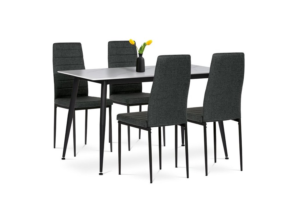 Jídelní set s 4 židlemi, 130x70x76cm, keramika, mramor, ASE-1004 BK2 ASE-1004 BK2