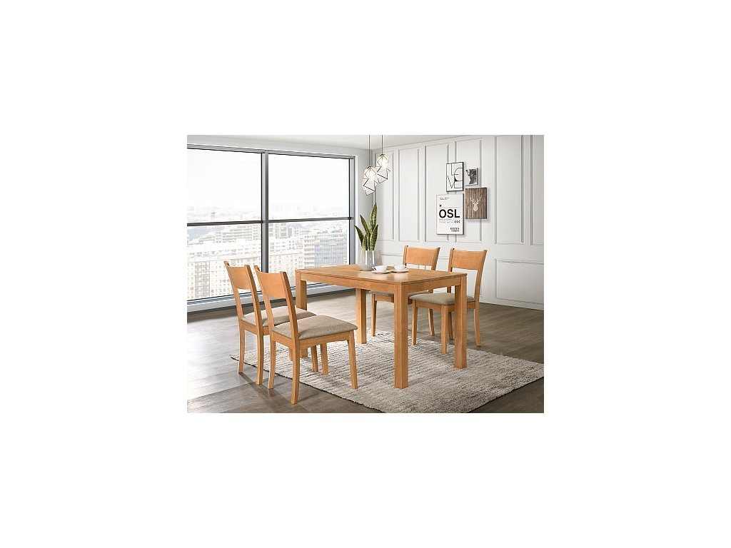 Klasický jídelní set, stůl a čtyři pohodlné polstrované židle. Vyrobeno z masivu.