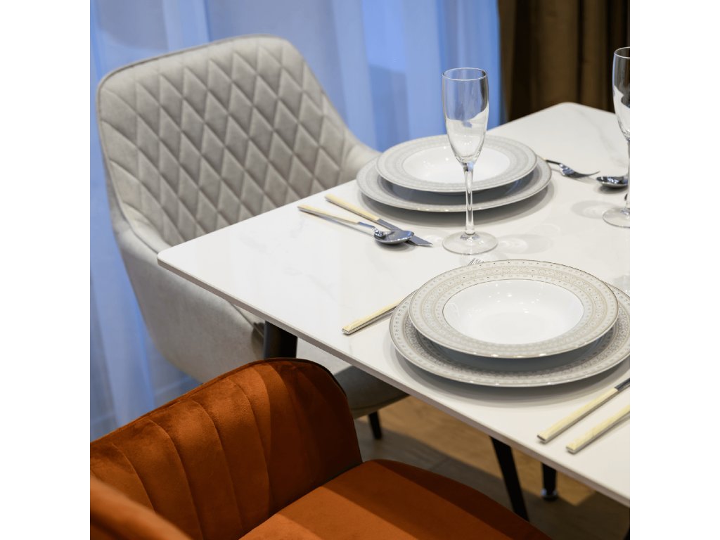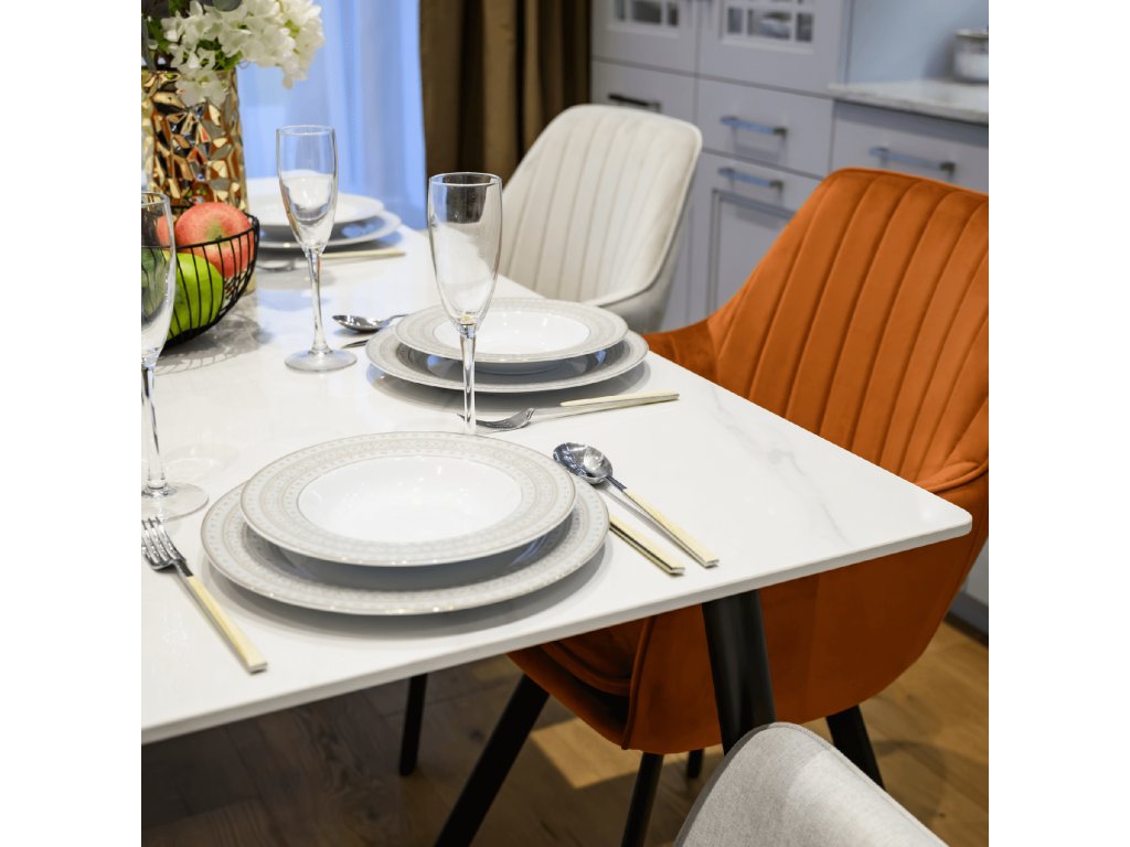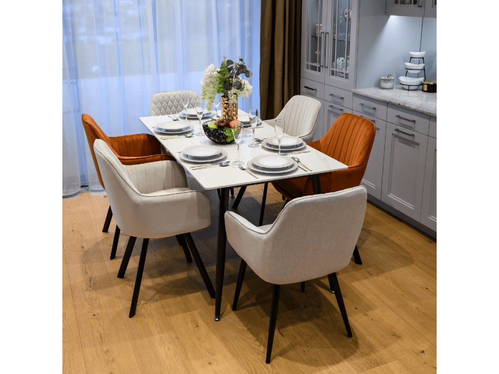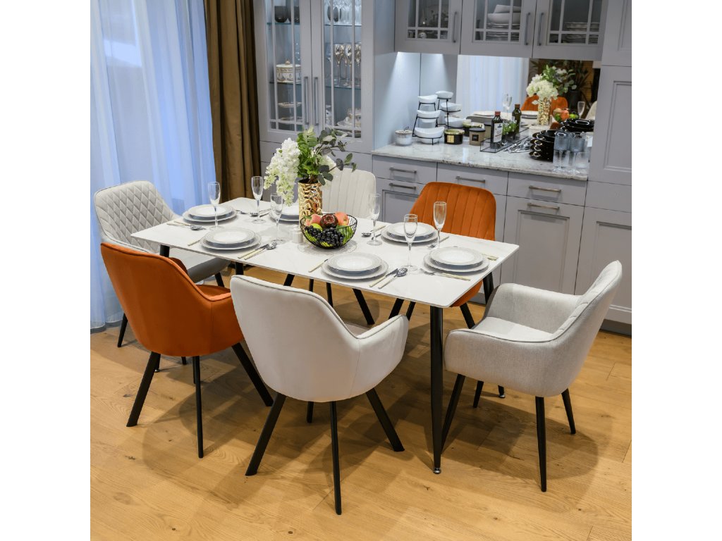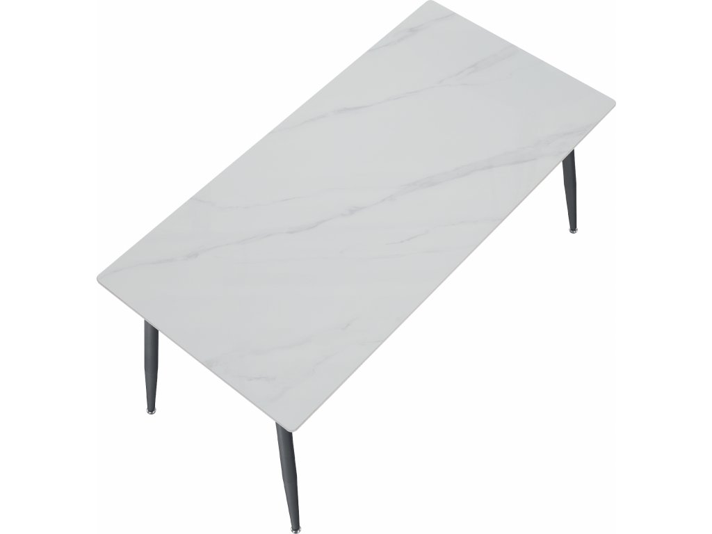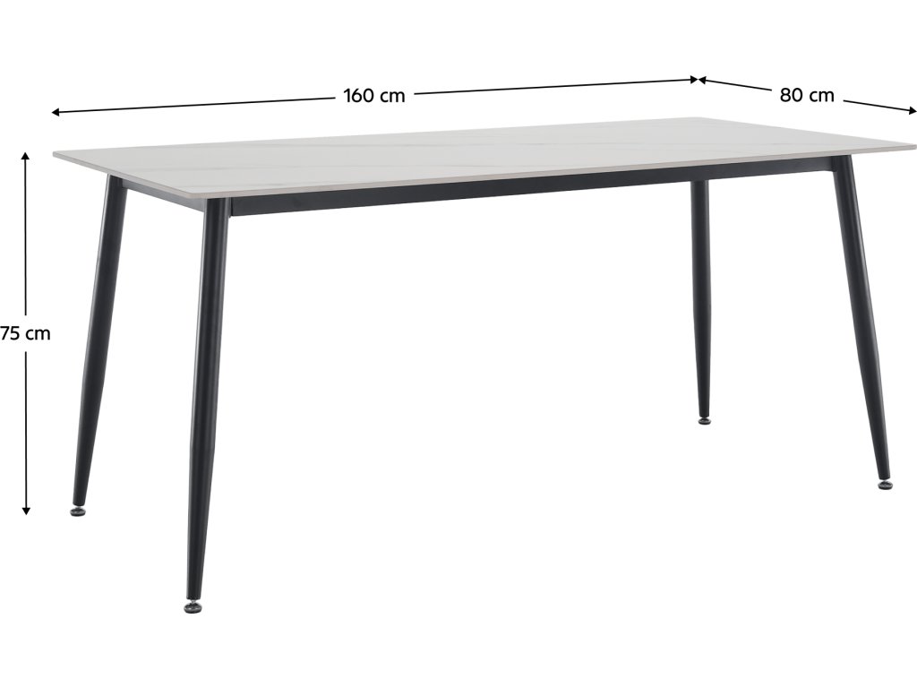 Materiál: kámen/ocel Barva: bílý mramor/černá Rozměry (ŠxHxV): 160x80x75 cm Tloušťka kamenného platu: 1,1 cm Nosnost: 60 kg Praktický Moderní design Vhodný pro 6-8 osob Dodáváno v demontu
