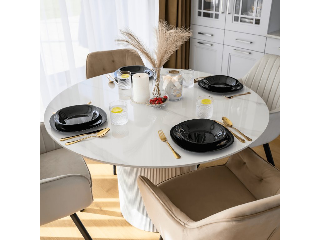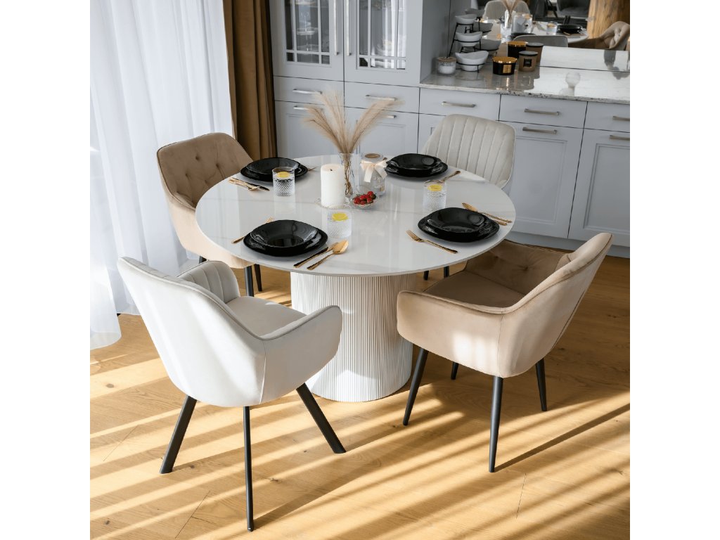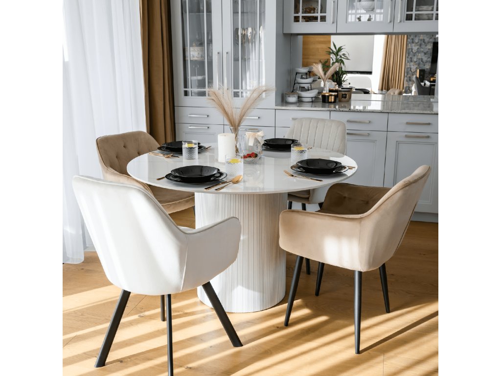 Jídelní stůl, bílý mramor/MDF, průměr 120 cm, MAHIR TYP 1