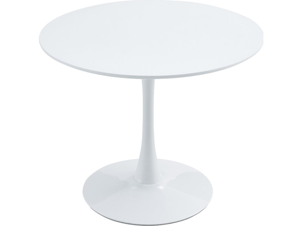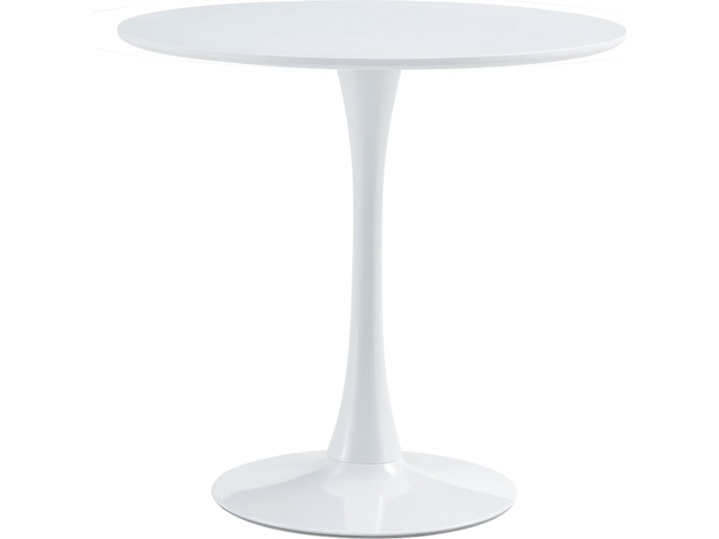 Jídelní stůl REVENTON Materiál: MDF laminovaná/ kov Barva: bílá matná Rozměry (průměr x V): 80x74 cm Tloušťka plátu stolu: 1,8 cm Průměr podstavy: 50 cm moderní design kulatý Dodávané v demontu.