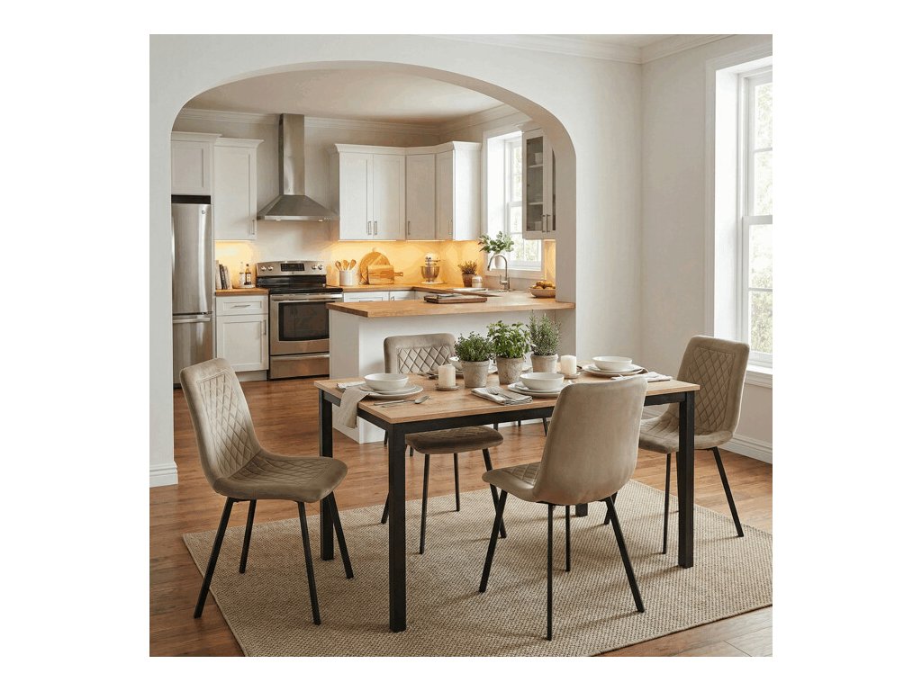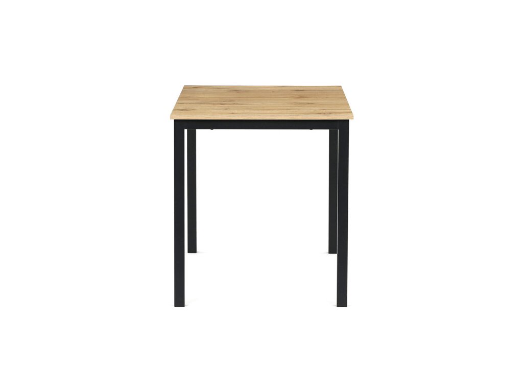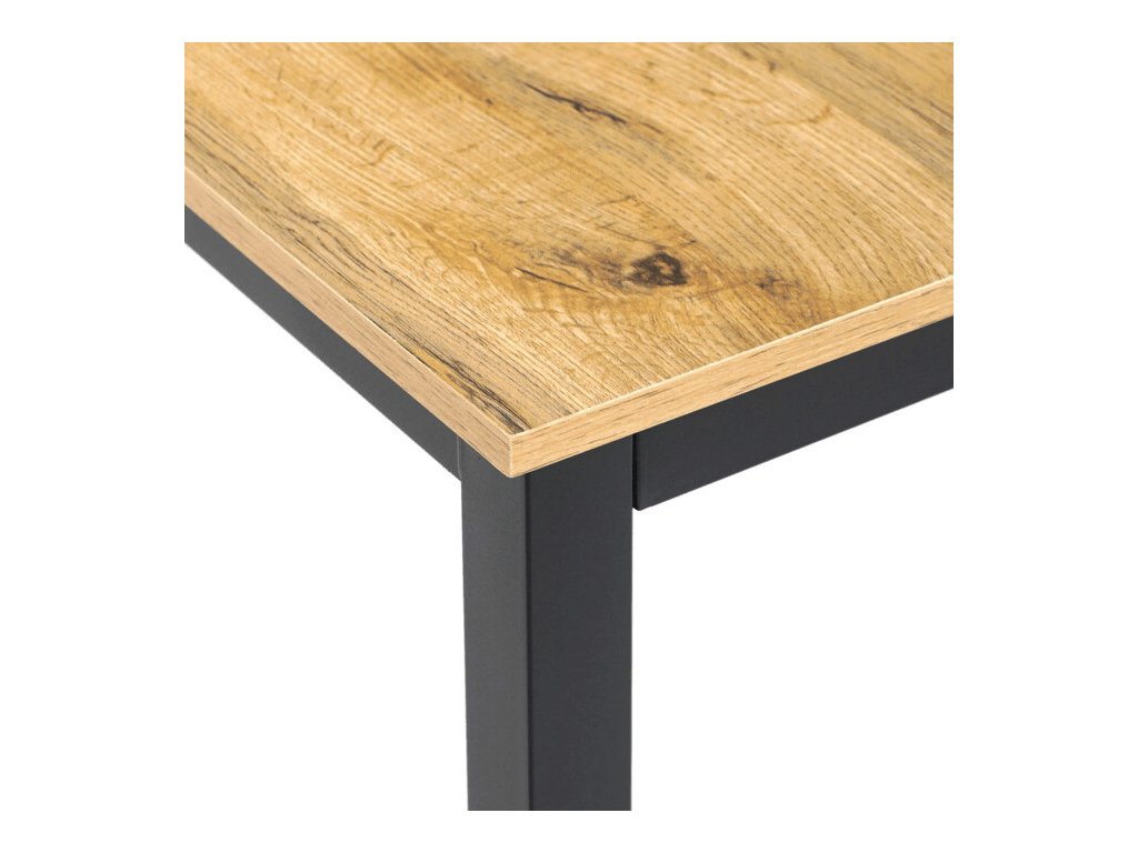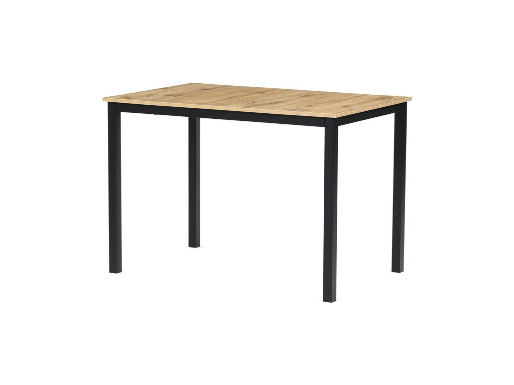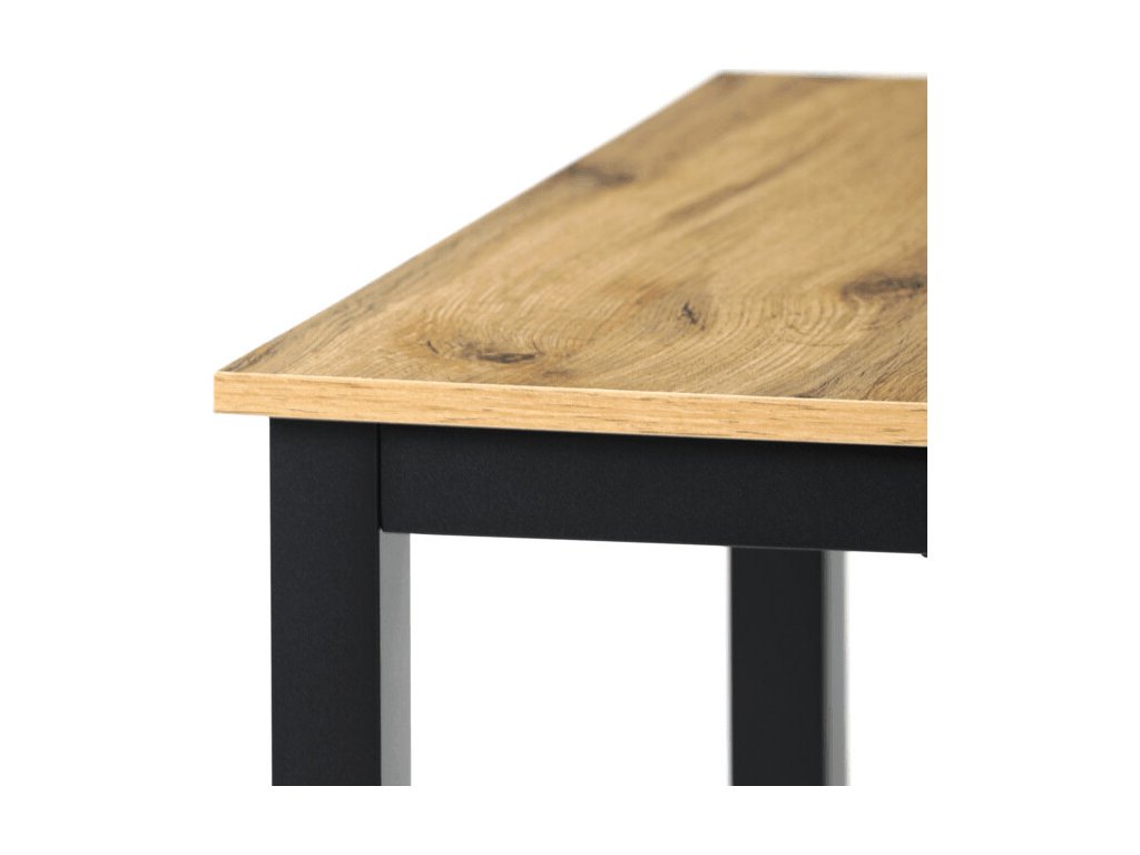 Jídelní stůl o rozměrech 110x70x75 cm kombinuje desku z MDF s dekorem divokého dubu a stabilní kovovou podnož v černém matném laku. Deska je navržena pro snadnou údržbu a odolnost vůči běžnému opotřebení, což zajišťuje dlouhodobou životnost. Kovová podnož poskytuje pevnou a stabilní oporu, která udržuje stůl bezpečně na místě během používání. Moderní design s přírodními odstíny dřeva se hodí do různých interiérů, od jídelny po pracovní kout. Stůl není rozkládací, což podtrhuje jeho kompaktní a praktické provedení.