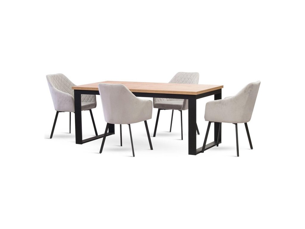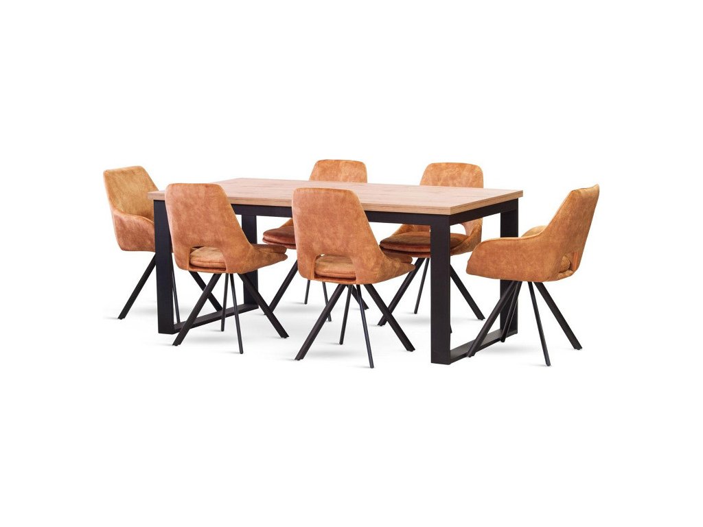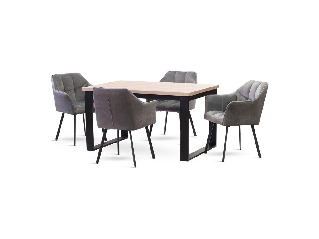 Moderní jídelní stůl s černou kovovou podnoží. Deska je lamino, v široké paletě odstínů - vždy s možností rozkládání.