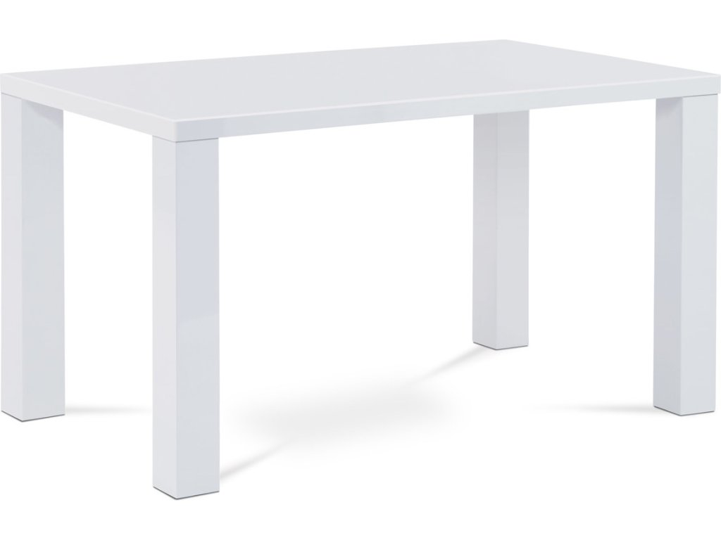 Jídelní stůl o rozměrech 135x80x76 cm je vyroben z MDF materiálu s povrchovou úpravou v lesklém bílém odstínu, která dodává moderní a svěží vzhled. Deska stolu je hladká s vysokým leskem a zaoblenými rohy, což zvyšuje bezpečnost a zároveň přispívá k elegantnímu designu. Nohy stolu jsou rovné, pevné a také z MDF s lesklou úpravou, což zajišťuje stabilitu a dlouhou životnost. Stůl je vhodný pro každodenní použití v jídelnách i kuchyních, kde oceníte jeho snadnou údržbu a odolnost proti poškrábání. Díky svým rozměrům nabízí dostatek prostoru pro pohodlné stolování až pro čtyři osoby.