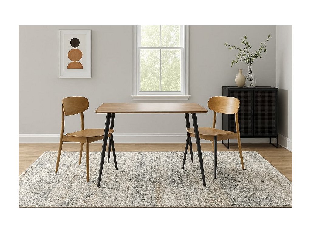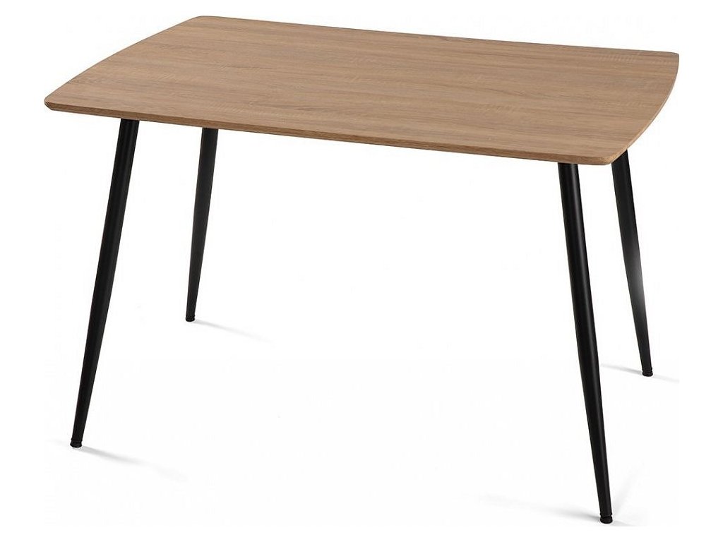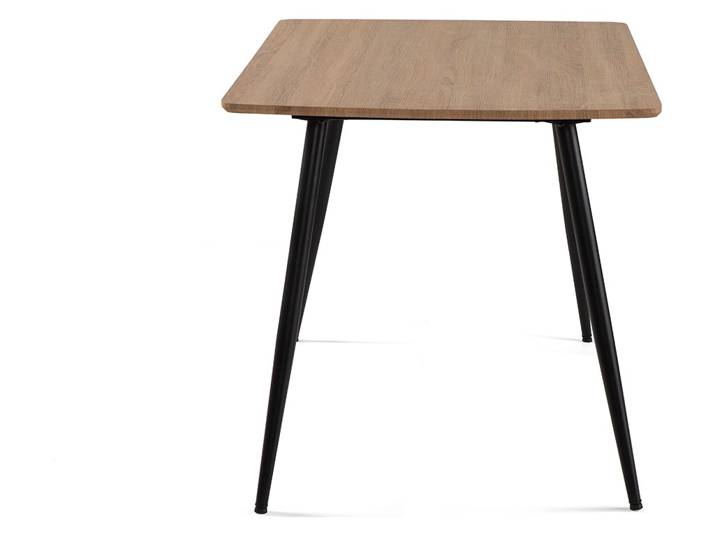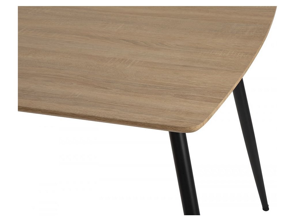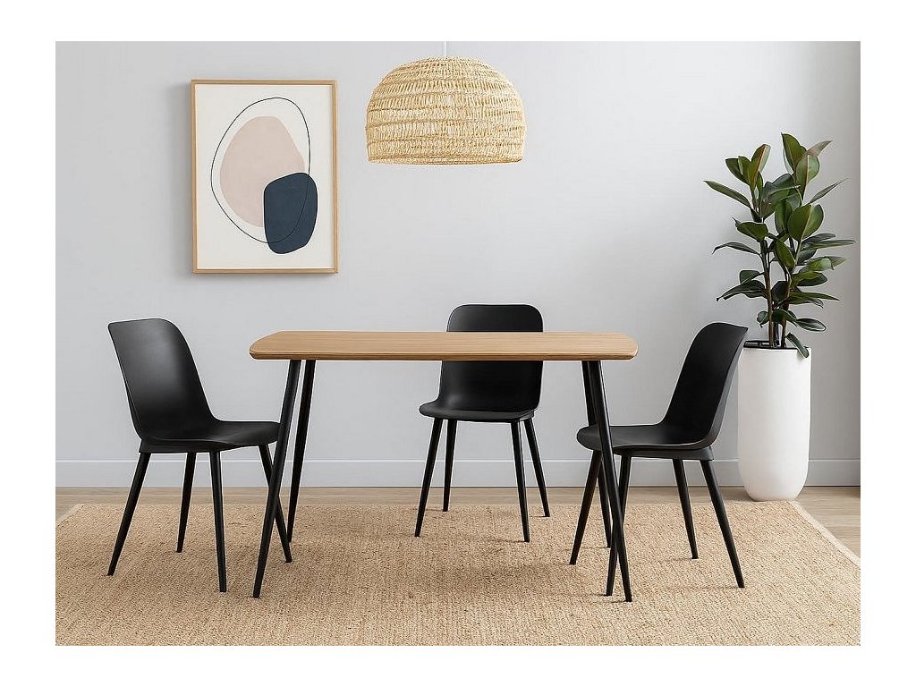 Dodejte svému interiéru lehkost, eleganci a styl s tímto moderním jídelním stolem. Kombinuje přírodní vzhled dřeva s černými kovovými nohami, které mu dodávají nadčasový industriální charakter. Díky čistým liniím a univerzálnímu designu se hodí do různých typů interiérů.