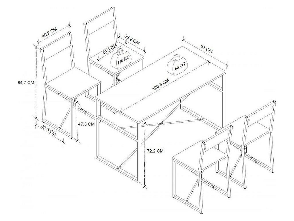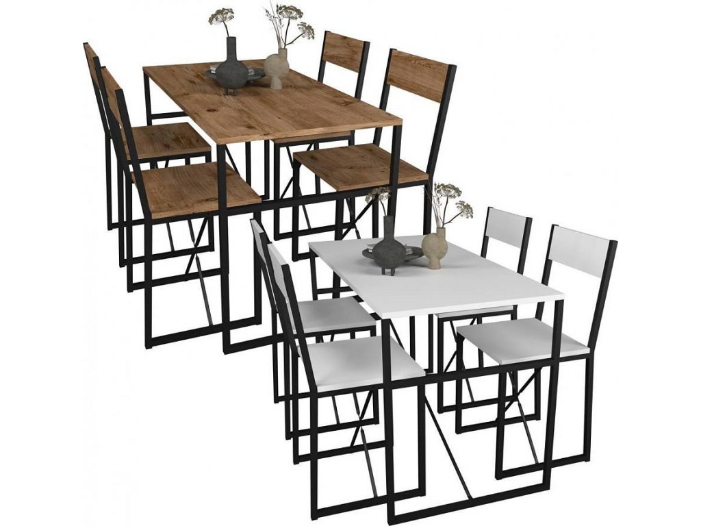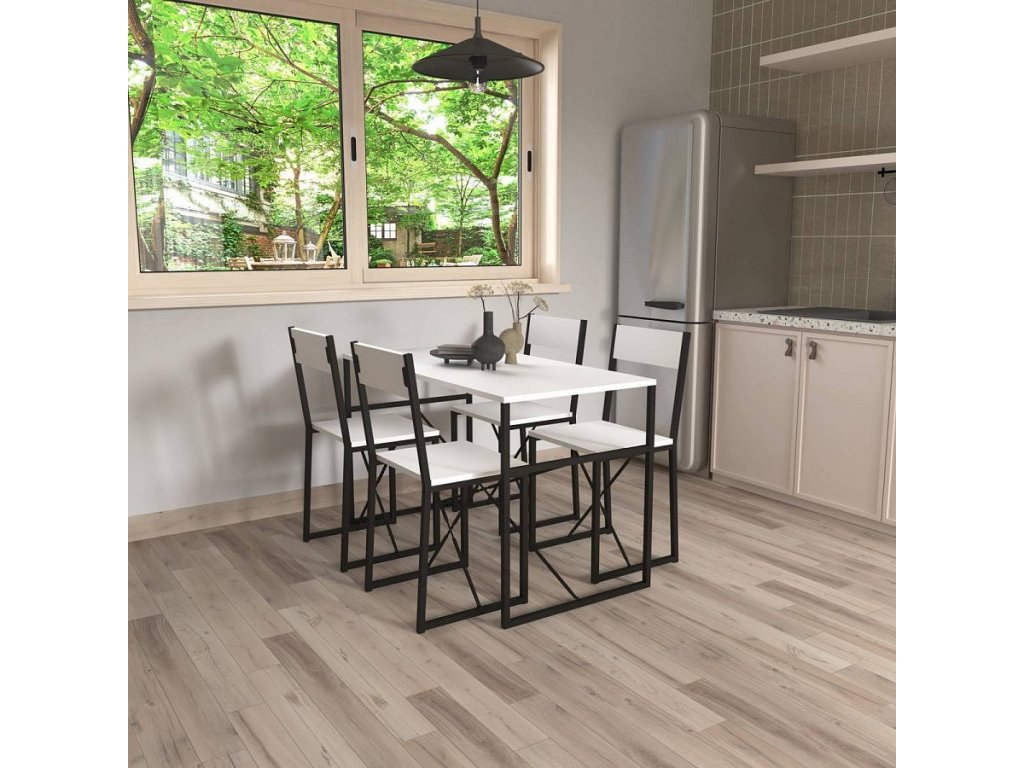 Hlavní vlastnosti: - Rozměry stolu cca v. 72 x š. 120 x h. 60 cm - Rozměry židlí cca v. 85 x š. 40 x h. 43 cm - Čtyři židle lze zasunout pod stůl pro úsporu místa - Úspora místa do každé jídelny - Kvalitní a stabilní zpracování v industriálním stylu - 1 stůl a 4 židle Sedací souprava „Insasi L“ šetří místo v každé jídelně. Nábytková sestava je nejen poutavým doplňkem, ale také velmi chytrým a funkčním kusem nábytku, protože židle lze pro úsporu místa uložit pod stůl. Od 70. let 20. století se VCM specializuje na design, výrobu a distribuci nábytku s férovým poměrem cena/výkon a již zkrášlila miliony domácností.