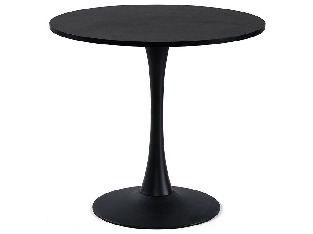 Kulatý jídelní stůl s moderním minimalistickým designem. Černá stolová deska dodává interiéru elegantní a sofistikovaný vzhled. Stabilní centrální noha zajišťuje pohodlné sezení kolem stolu. Vhodný do jídelny, kuchyně či kavárenských prostor. Spojuje styl, praktičnost a nadčasovou eleganci.