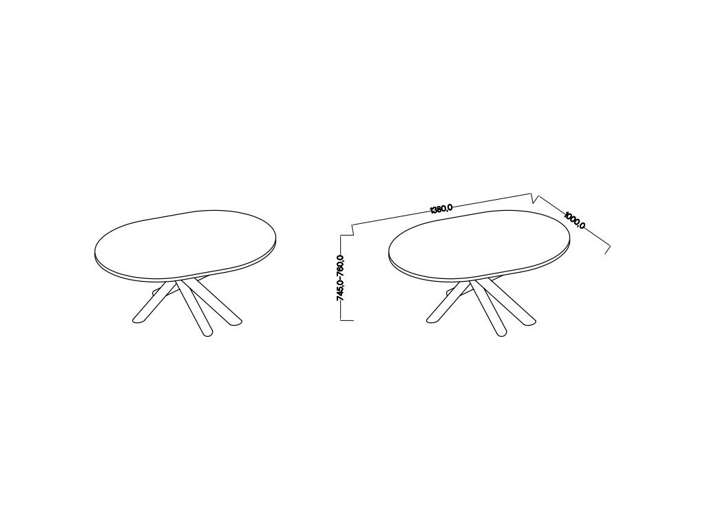 rozměry: ovál 138 x 100 cm, výška 75 cm