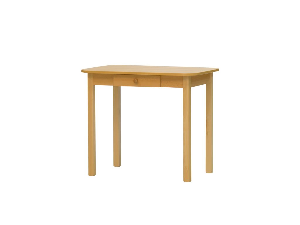 Stůl v kompaktních rozměrech 90x65cm se zaoblenými rohy s praktickou zásuvkou 25,5x31x,5cm. Deska lamino 18mm, nohy masiv 5x5cm. Vhodný do malého prostoru.