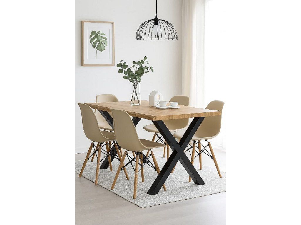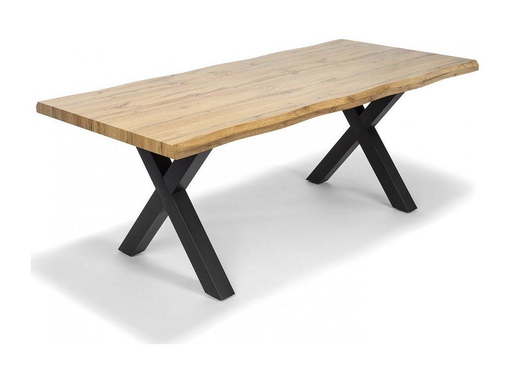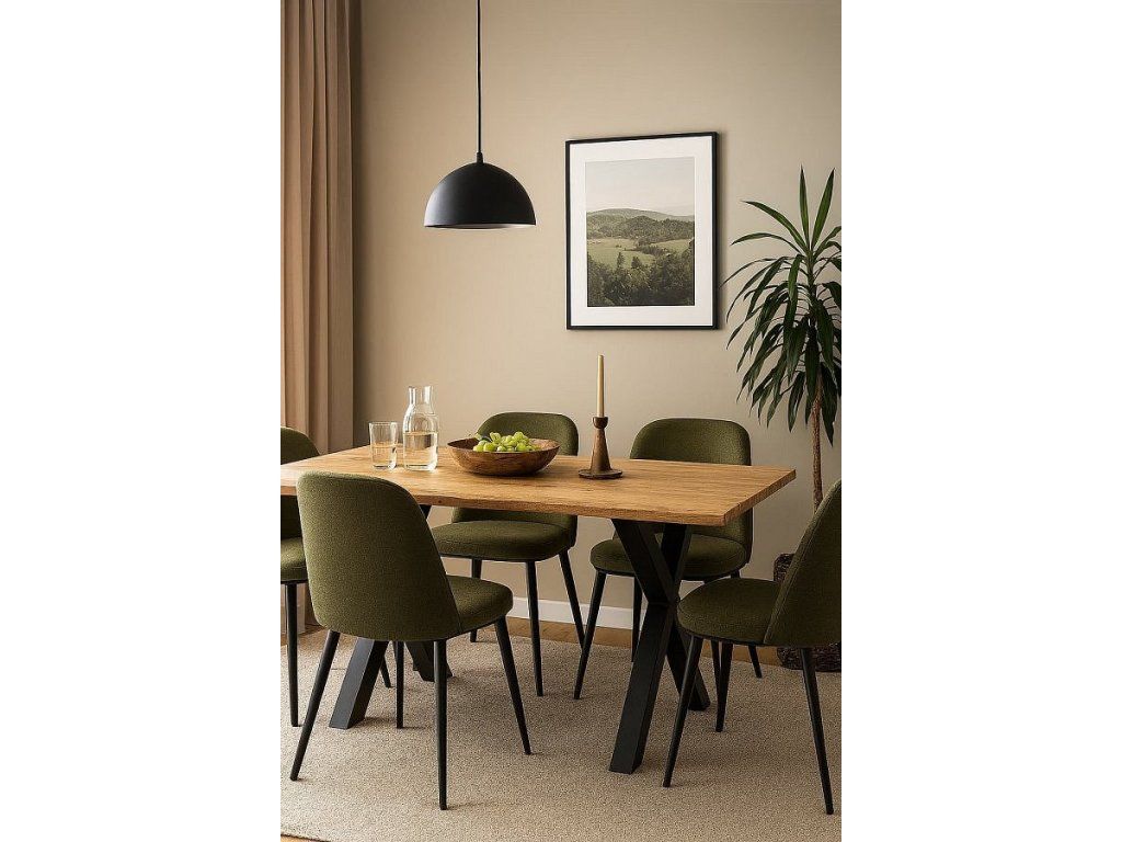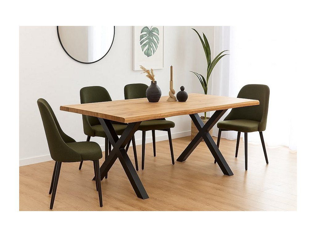 Jídelní stůl v industriálním stylu je výrazným prvkem každé jídelny. Kombinace masivně působící dubové desky v přírodním dekoru a stabilních kovových noh ve tvaru X vytváří harmonii mezi teplem dřeva a surovostí kovu. Tento kontrast dodává interiéru charakter, originalitu a nadčasový vzhled, který nepodléhá trendům.
