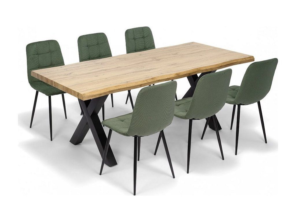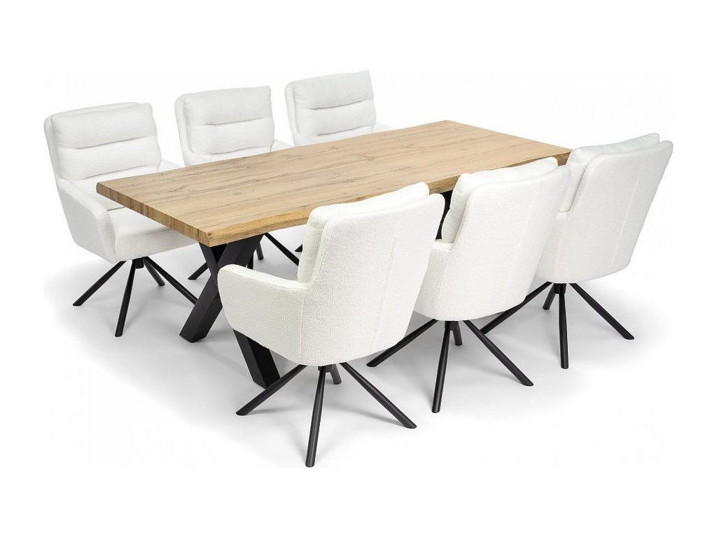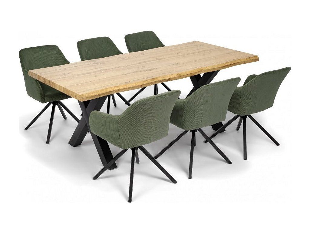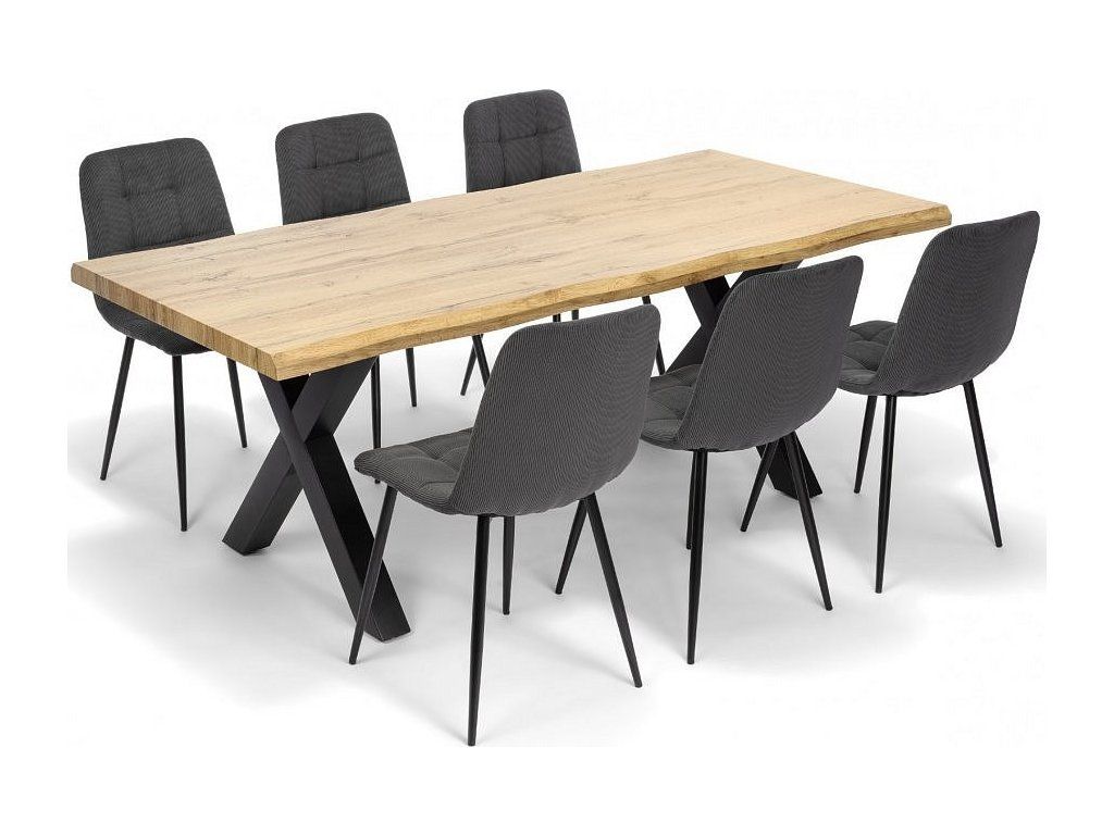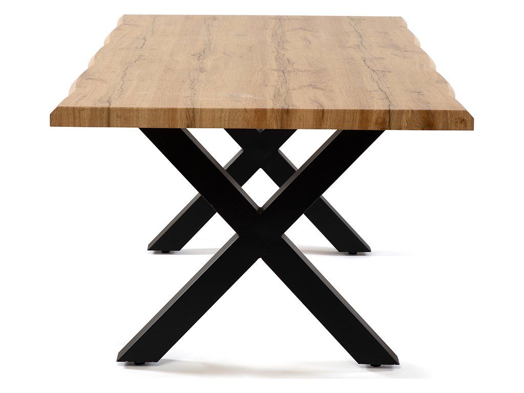 Jídelní stůl v industriálním stylu je výrazným prvkem každé jídelny. Kombinace masivně působící dubové desky v přírodním dekoru a stabilních kovových noh ve tvaru X vytváří harmonii mezi teplem dřeva a surovostí kovu. Tento kontrast dodává interiéru charakter, originalitu a nadčasový vzhled, který nepodléhá trendům.