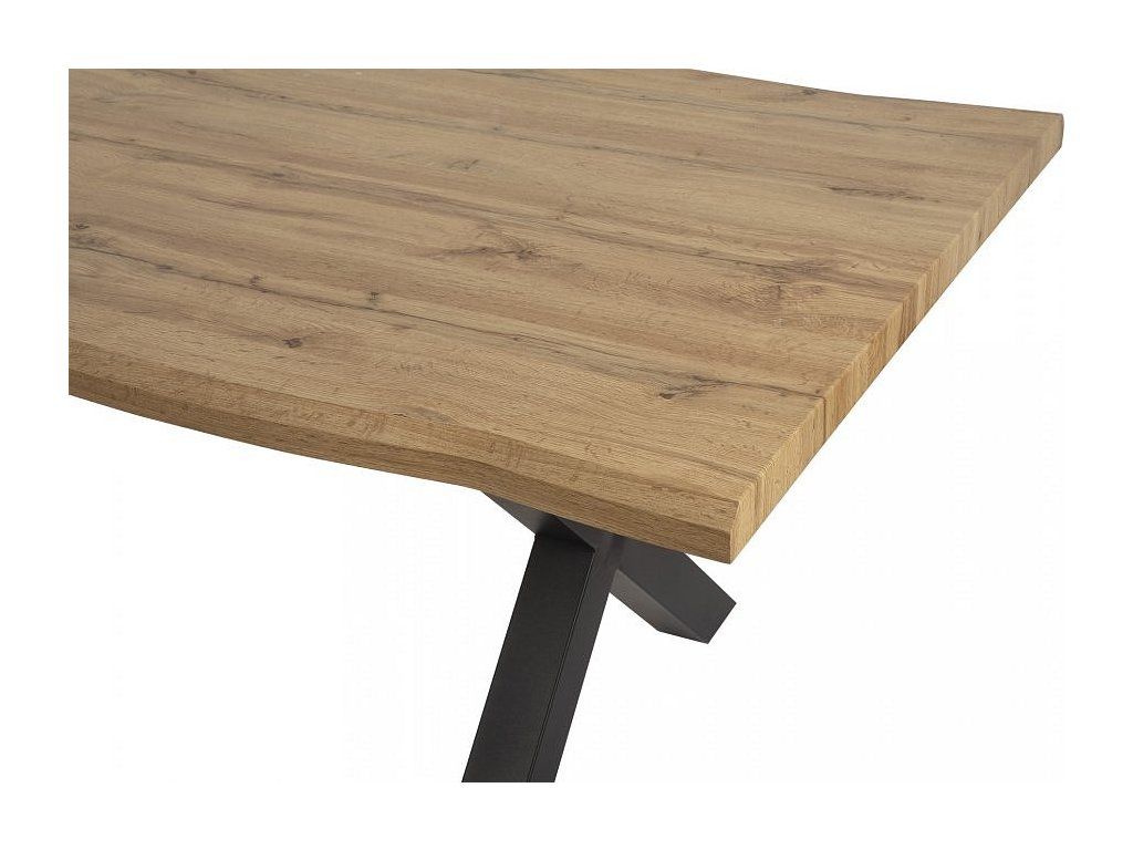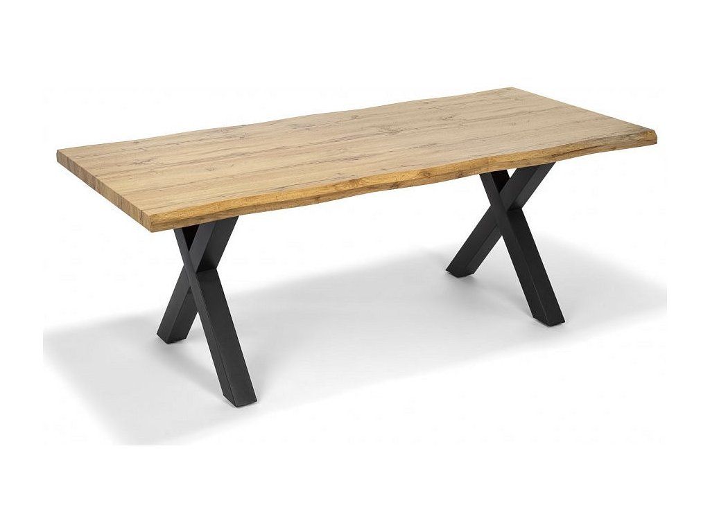 Jídelní stůl s designovou dřevěnou deskou a přírodními hranami. Ochranná 3D fólie. Práškované ocelové podnoží v černé barvě. Vhodné až pro 6 osob po stranách + 2 místa u čela..