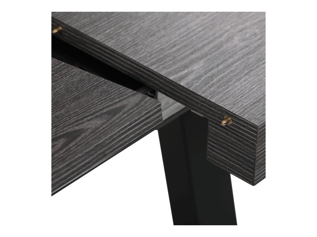Jídelní stůl HT-R5624 GREY nabízí praktické rozkládání s celkovými rozměry 160+80x90x75 cm, což umožňuje flexibilní využití prostoru. Deska je vyrobena z lamina s dekorem šedého dubu a je opatřena ABS hranou, která zvyšuje odolnost proti poškození a usnadňuje údržbu. Matný povrch dodává stolové desce moderní vzhled a zároveň minimalizuje viditelnost otisků prstů. Stabilní kovová podnož v černé barvě zajišťuje pevnou oporu a dlouhou životnost stolu. Díky rozkládacímu mechanismu je stůl vhodný jak pro každodenní použití, tak i pro větší společenské události.
